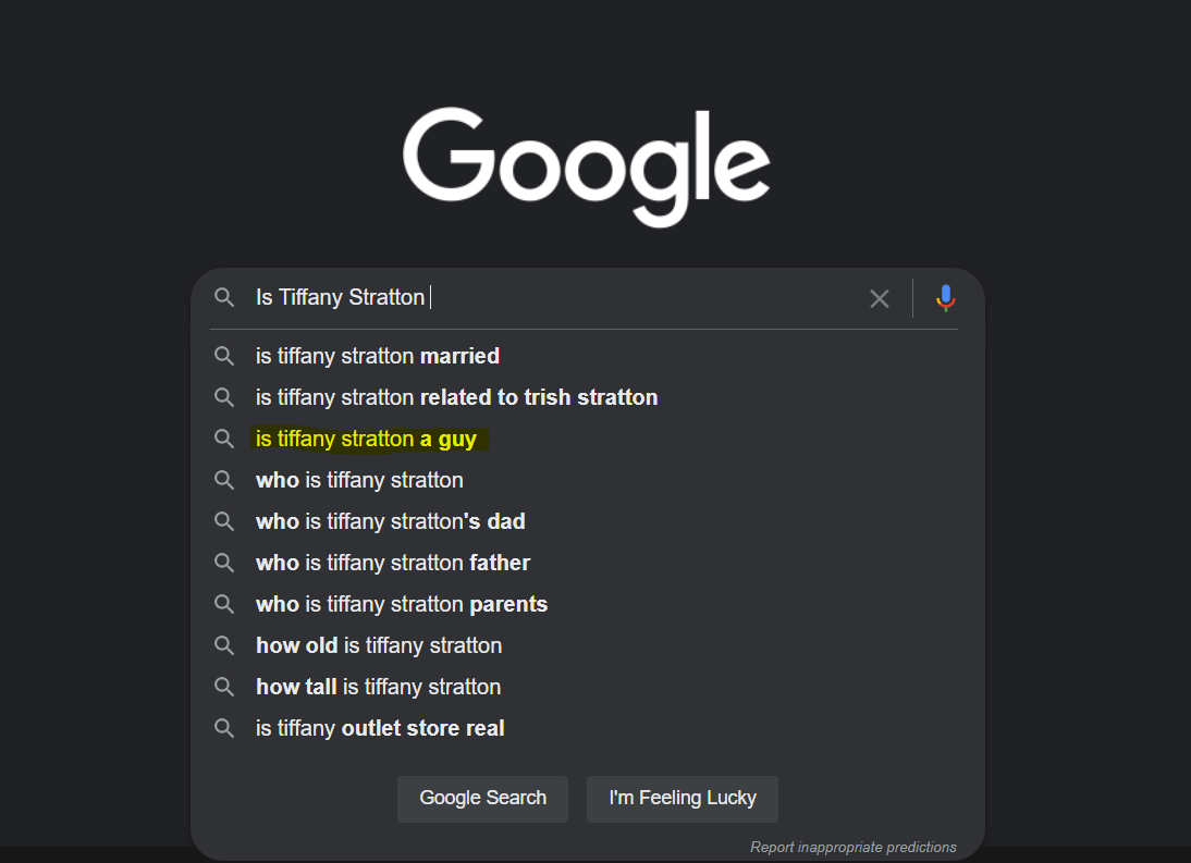 It literally looks like a man in woman's gear and it pisses me off that even WWE allows this shit. But the good thing is like any other person on TV, it's going to google itself, and when it does it'll see what people are asking, and WWE can't stop that.