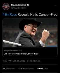 [20 / 3 / 20] 666KiB, 1170x1419, B304D58E-88A8-4683-B5EF-2F89E65489D9.jpg View SameGoogleImgOpsiqdbSauceNAO Thread Reply Original Report Media View Same Google ImgOps iqdb SauceNAO Download Anonymous Fri 28 Oct 2022 19:12:32 No.7761088 View ViewReplyOriginalReport Quoted By: >>7761091 >>7761104 >>7761107 >>7761114 >>7761129 >>7761162 >>7761807 >>7761818 >>7761826 >>7761829 >>7761844 >>7761913 >>7761920 >>7762030 >>7762100 [Good News] Jim Ross (70) is now cancer free