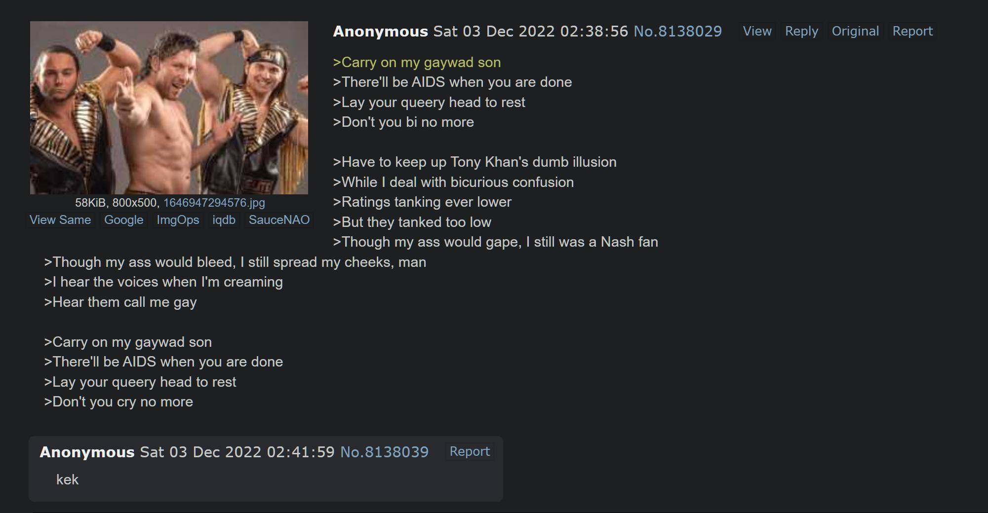 >>8847412>cant get over as normal tag team>literally create championship to book themselves to win>run off top draw, gets stripped of said belts>immediately get them back on returnNo anon, they clearly have no control over their own booking at all anon, completely organic championship runs