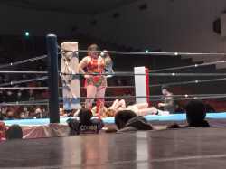 In the semi-main event, Makoto (33) & Hamuko Hoshi (40) defeated Ibuki Hoshi (19) & Hikaru Shida (34, AEW) to become the 59th International Ribbon tag team champions.