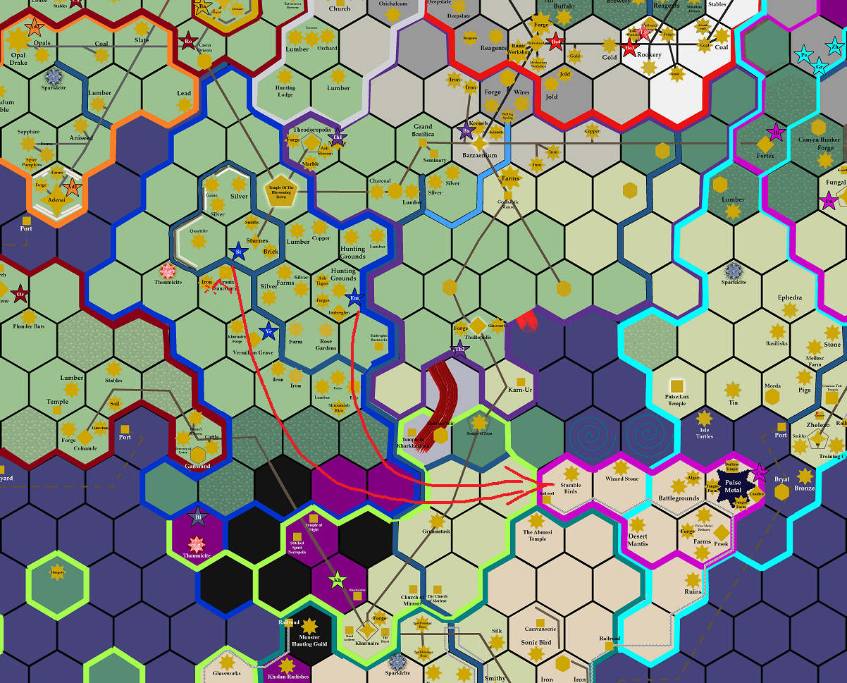 Glorious victory at last! Though the battle rages day and night Turban ingenuity has won the day, developing horrific poisons that leave the invaders trembling and flailing while strikes against key locations of their silver fortress has sent it into retreat toward the ocean! Despite the usage of terrible weapons of magical fog the invaders have been driven back! At the height of the battle a great charge of biotitans slam into the fortress and hurl it into the sea! Glory to the Turquoise Turbans! Nothing remains of the invaders save their memory.