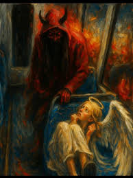 It's unclear how much time has passed. The darkness beneath your eyelids has changed. Suddenly, there is space, and movement. Out of the abbyss, a thing appears