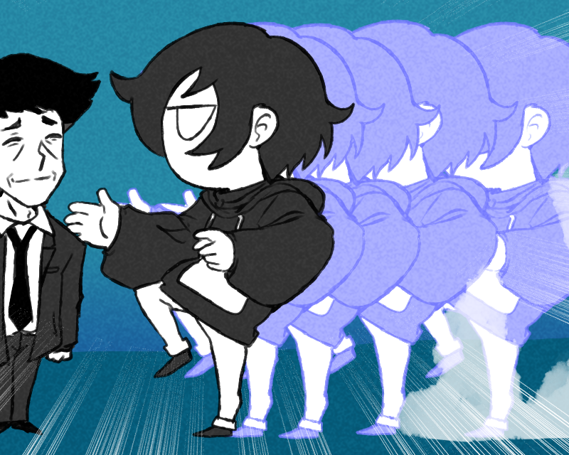 Is he a guest? Is this your bubble dimension? Or should you treat it like another place in the world and not act like you own it? Like you’re in another town and that’s it. Nobody owns a town. What a little shit you are, thinking you own this place. You didn’t even build it. Wilma did. It’s Wilma’s big ass bubble. Or is it San Wich’s? A collaborative effort, maybe? You can’t get a bubble this big alone, unless with the help of Jackey Frosties. That’s still teamwork. The world around you is made by many factors, circumstances, and collectives— what a wonderful existence. You’ve spent days here and this is the first time you’re wondering about these useless technicalities. Whatever you do, you mustn’t bring this topic to light with Jesse.