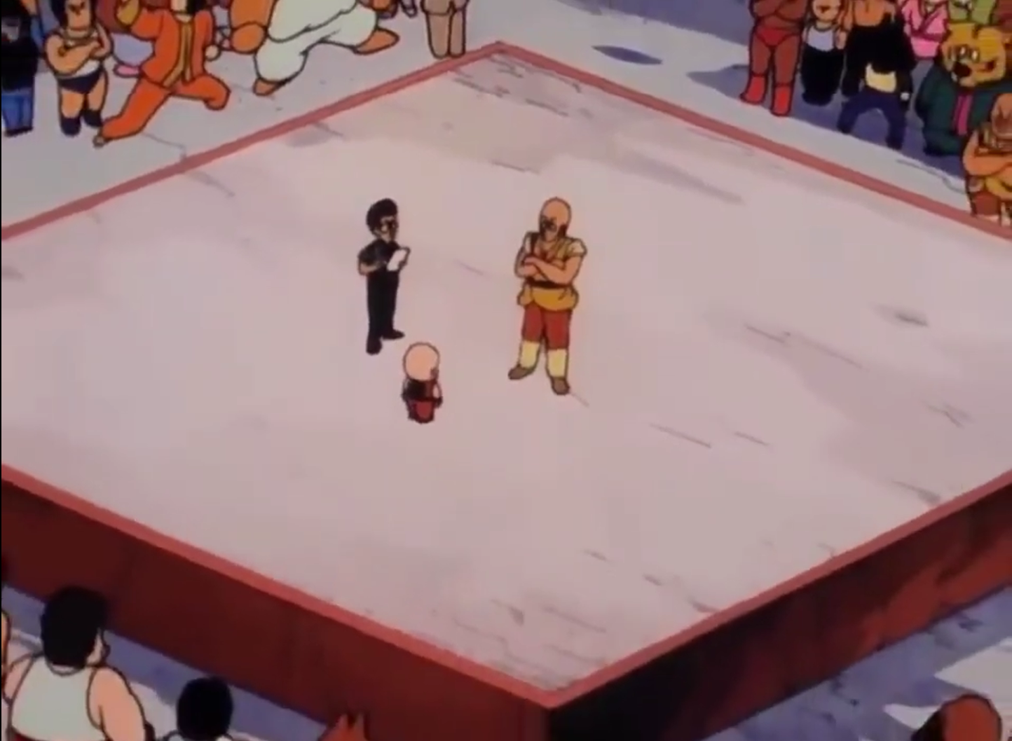 “Deedee eff...?” Krillin mutters, his confused voice barely audible over the sudden quiet you've realized has settled over the restaurant. Everyone is looking towards you all, even moreso than when you'd entered now. But they seem to be more looking at Fu than you, which makes sense. After all, you and your family look almost like these far weaker creatures while Fu, with his purple skin stands out quite a bit.