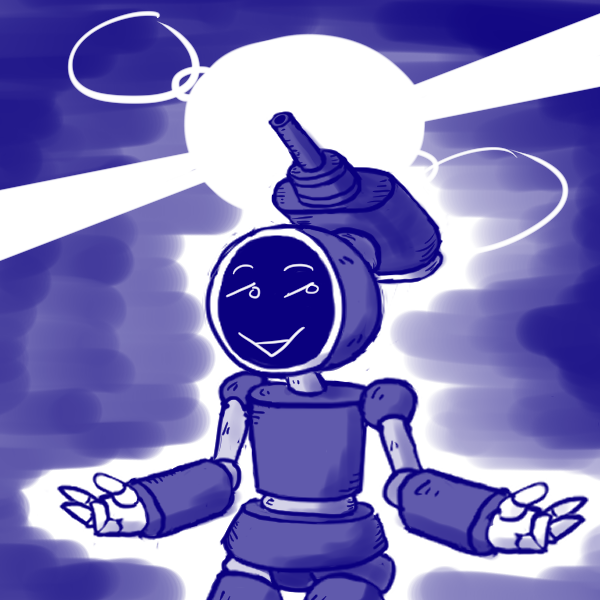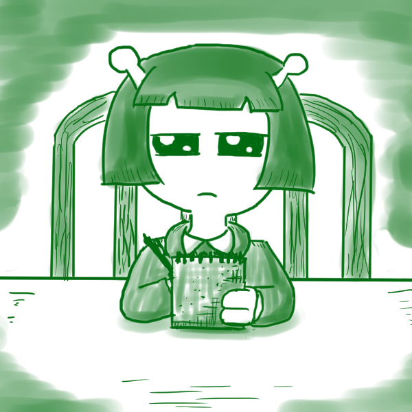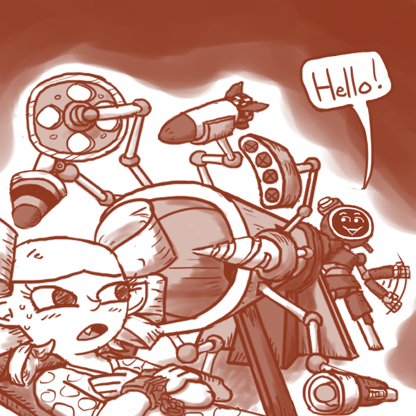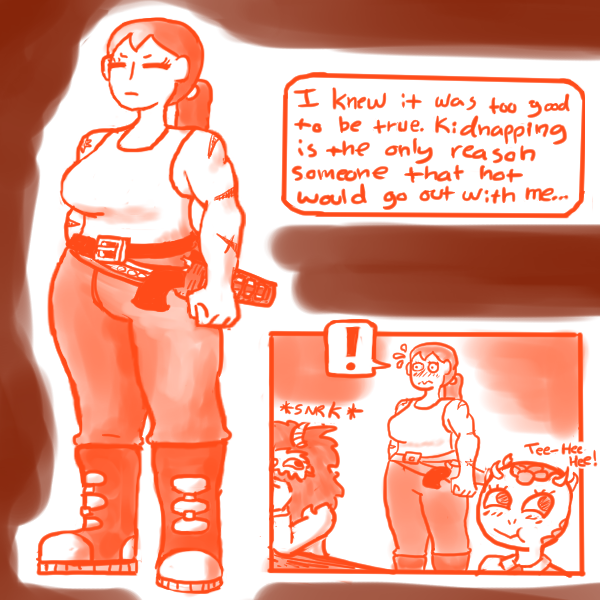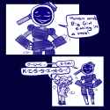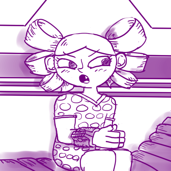"As for other human workers, I haven't met any. Big Girl if you can't halfies." The robot says shrugging.