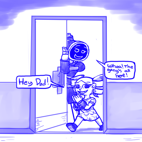 "Ehh...? You couldn't tell, Dad?" Tamako says, looking up at you with an impish grin.