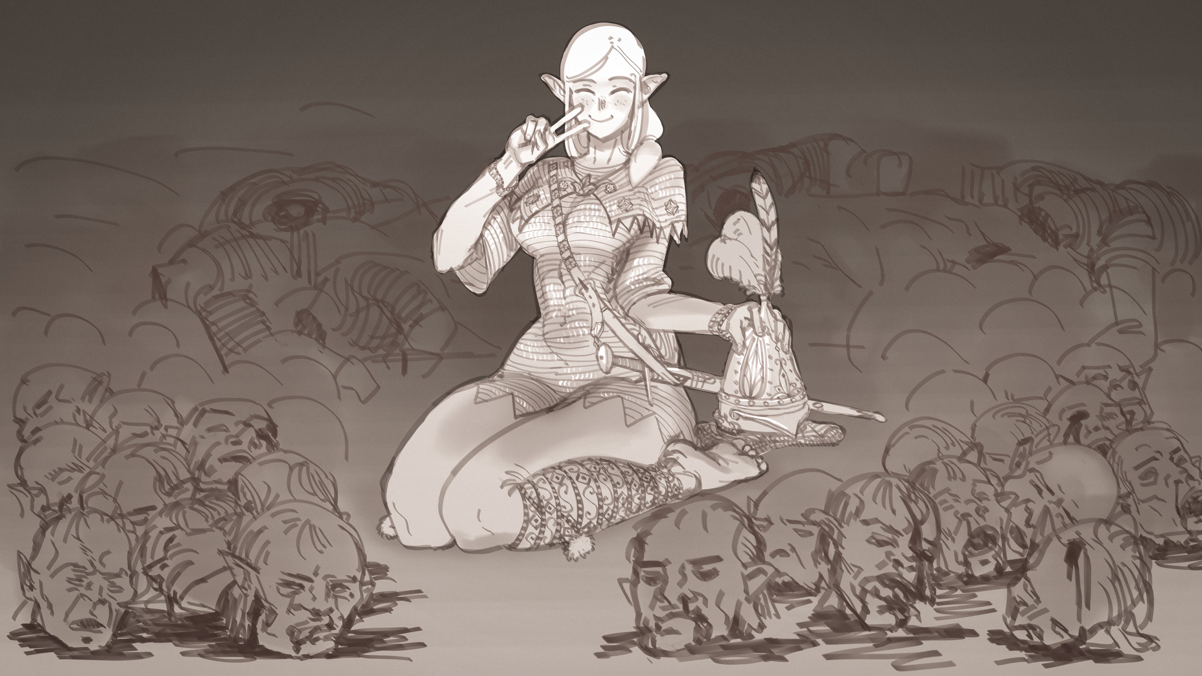 Though dwarven methods of recording the date make it impossible to determine the exact year, millennia before these lands known as the Silver Marches were settled by humans, Tel'Quessir - that is, what the darthiir call themselves - and dwarvenkind inhabited the region as neighbors. From what the three have been able to infer, both realms found themselves facing up against an existential threat in the form of orcish aggression.