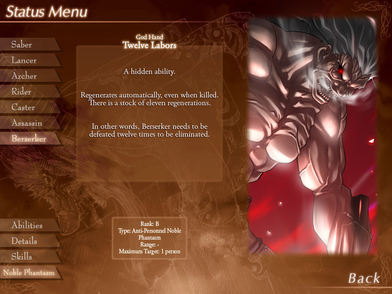 a brand-new person derived from the guy himself because he got forced into the Berserker class and his NP was the justification for it. Madness Enhancement EX results in changes to your personality rather than just being mad with rage. I wonder where Adelheid is now. What I wouldn't give to have her back.