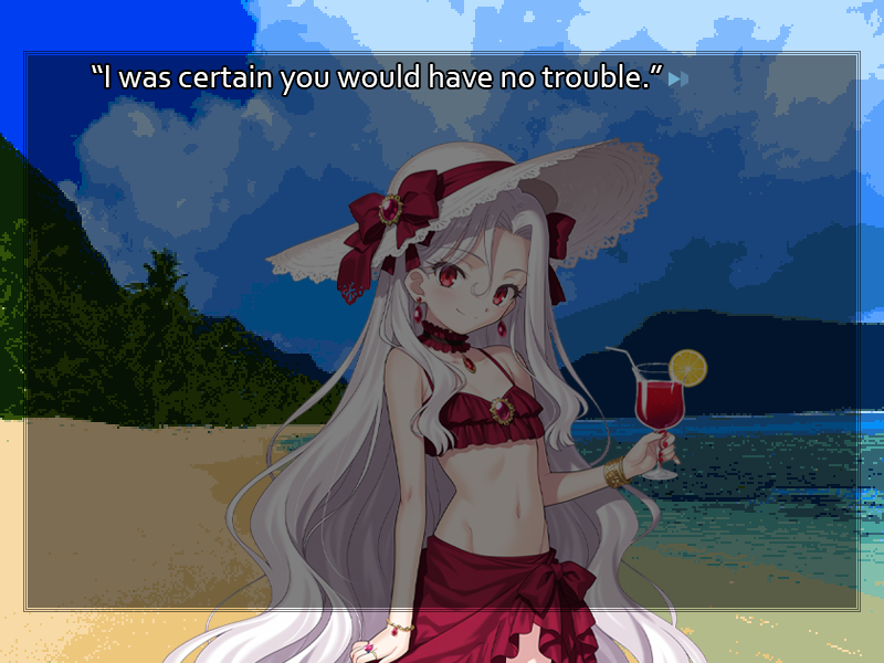 However, I really would like players to understand two things that didn't seem to get across at the end of Akeldama. The protagonist here isn't Shirou, someone so pure-hearted that he forms undying attachments over the course of two weeks, and Circe isn't Medea, an earnest and pure princess just searching for a man she could devote herself to without being betrayed. If anything, Circe's personality is more similar to Tamamo-no-Mae. If you've played Extra and CCC, and you read Circe's myths, I hope you'll understand.
