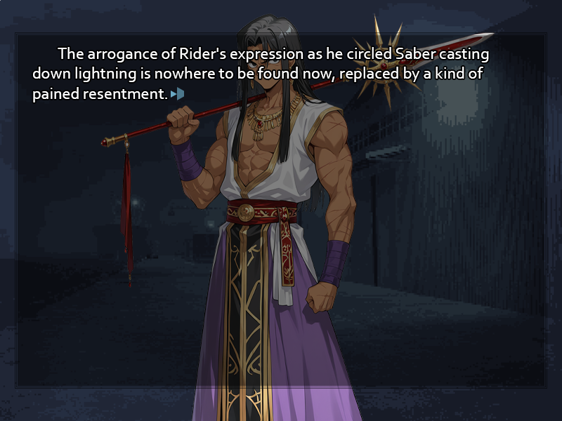 >Character trait system I take your point on Archer's central emptiness undercutting a stepwise system of trait development. All I can say in reply is that since the prologue we've been making practical decisions rather than character-based ones, such as sticking with Liliesviel and Circe for guaranteed mana supply. Both the (real world) time gap from Akeldama and the deconstructive unveiling of Archer's past impress on me the need for brooding and explicit characterization posthaste. I fear grounding more critical decisions on the basis of mere subsistence. Unless you intentionally want his character to emerge from such reasoning, in which case fair enough.