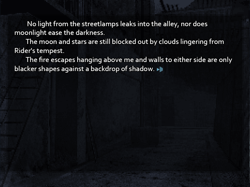 >What are your thoughts on how your original/sequels went in the past? What kind of vision do you have going forward with that in mind? I sort of covered this with your first two questions, but I think it comes down to planning. I had an idea of what the overall arc of Akeldama was like right from the beginning. Who Cid was, what the Akeldama was, what his plan was, what would happen when the protagonist won the Holy Grail War, all of that stuff. Everything within that was open to change, but because I had a clear idea of what it was all leading up to, I could write it pretty freely and nothing really felt meandering or out of place. I never really had that kind of clear vision with the original Awakening Mirror, and the result was a quest that didn't really go anywhere. I would make a decision because it seemed like it would make the next update more interesting, and then realize a month later what kind of problems it had set up for the long-term story of the quest. Very freeform, which is not the best thing for a narrative. With this version, I have the same kind of clear idea of what the protagonist is dealing with and what's going on in the world around him that I had from the start of City Akeldama.