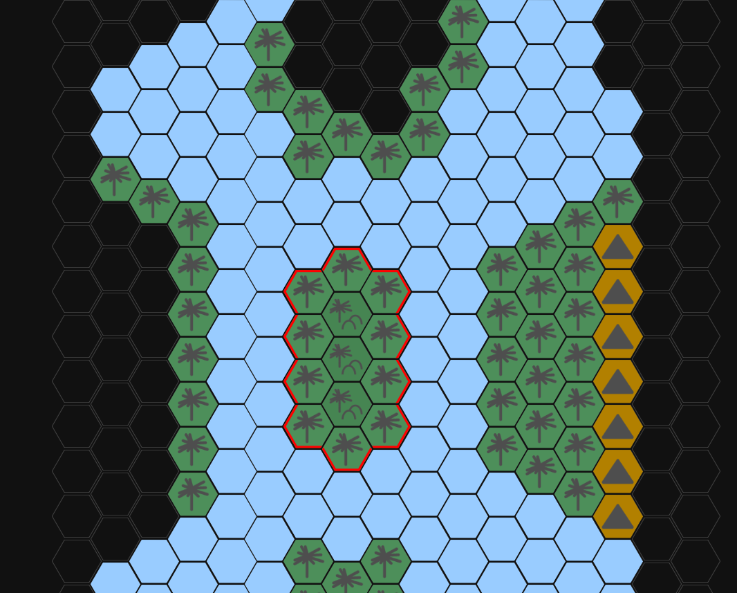 >A dry hot desert pressed against the ocean a grand river feeds it every few moon the river's belly swells flooding the plains where your crops rest. Most game is in the river and hostile defending their territory, yet they have to where to retreat the desert is too harsh and they don't seem to like the ocean. The river is fed by large mountains. Technolgy: Agriculture IV Resources: Game II Wild Plants I Lumber: II Tamable Animals IV