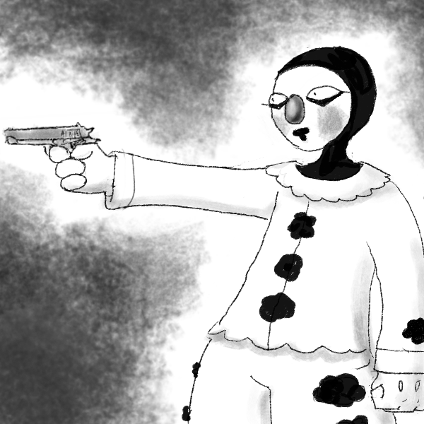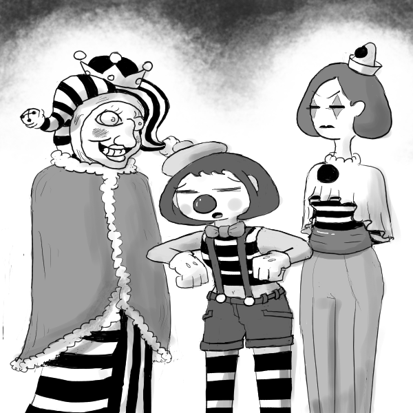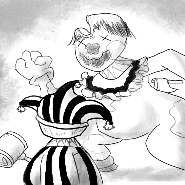 You open your mouth, but stop. Was it a clown or a jester that comes from a