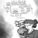 Tamako kicks her legs happily while looking out the window of the car at the sparse forest passing them by. First time on a train, and now her first time in a car! Kamiko hands over a bag of macarons they were passing back and forth while reading her notes.