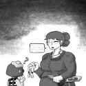 "So what are these ruins like?" Tamako says, chomping down on a pastry.