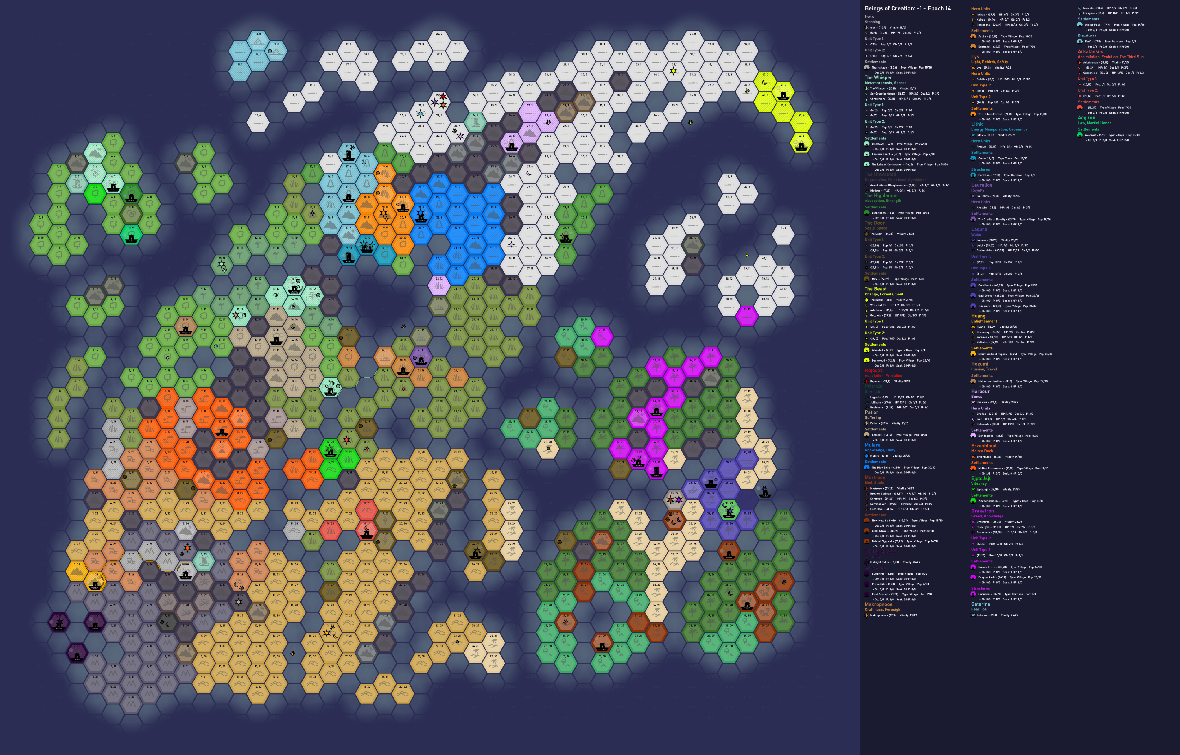 Welcome to a spinoff installation of Beings of Creation, a long-running tactical civ-style hexcrawl based on your imagination. You are a non-omniscient divine being of great power. You find yourself spontaneously brought into existence in a prehistoric, primeval world, untouched by Gods.