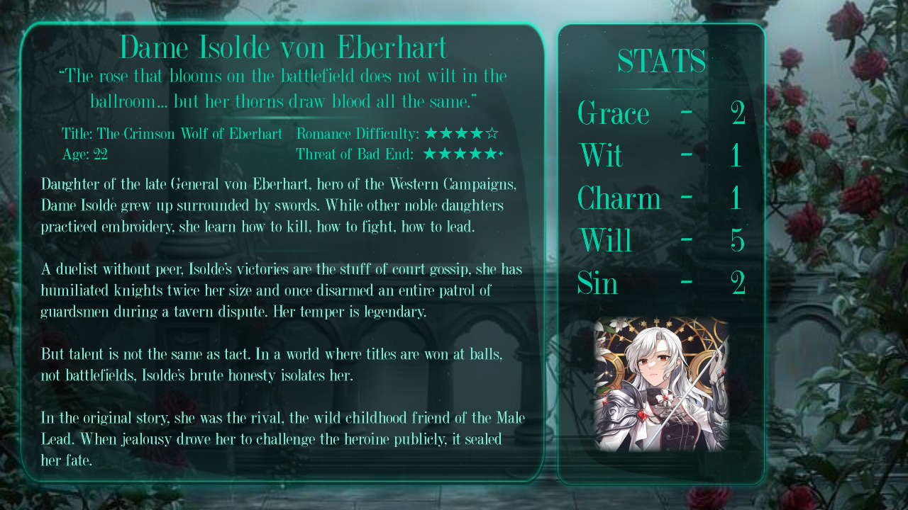 There's no denying it anymore. You're in <span class="mu-s">Crimson Grace of the Rose Bride</span> a game you played back in... Back in the <span class="mu-i">before</span>.
