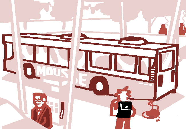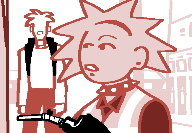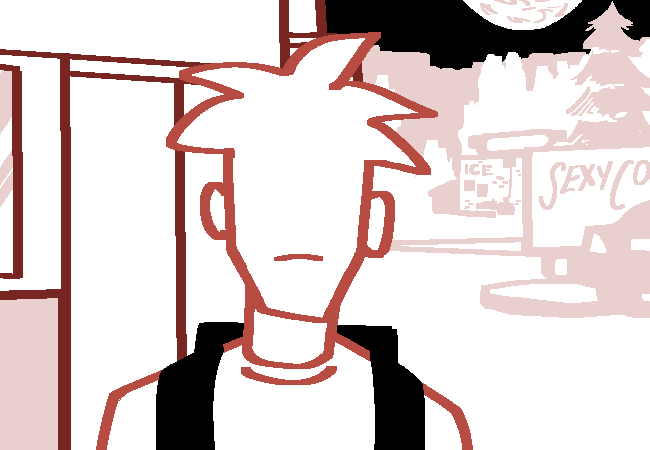 "JESUS FUCK." A bit of spit leaves the girl's mouth with the utterance of the expletive. The thin blonde man shoots an annoyed look at his coworker as he leans on his broom, watching her wipe the spit from her chin.