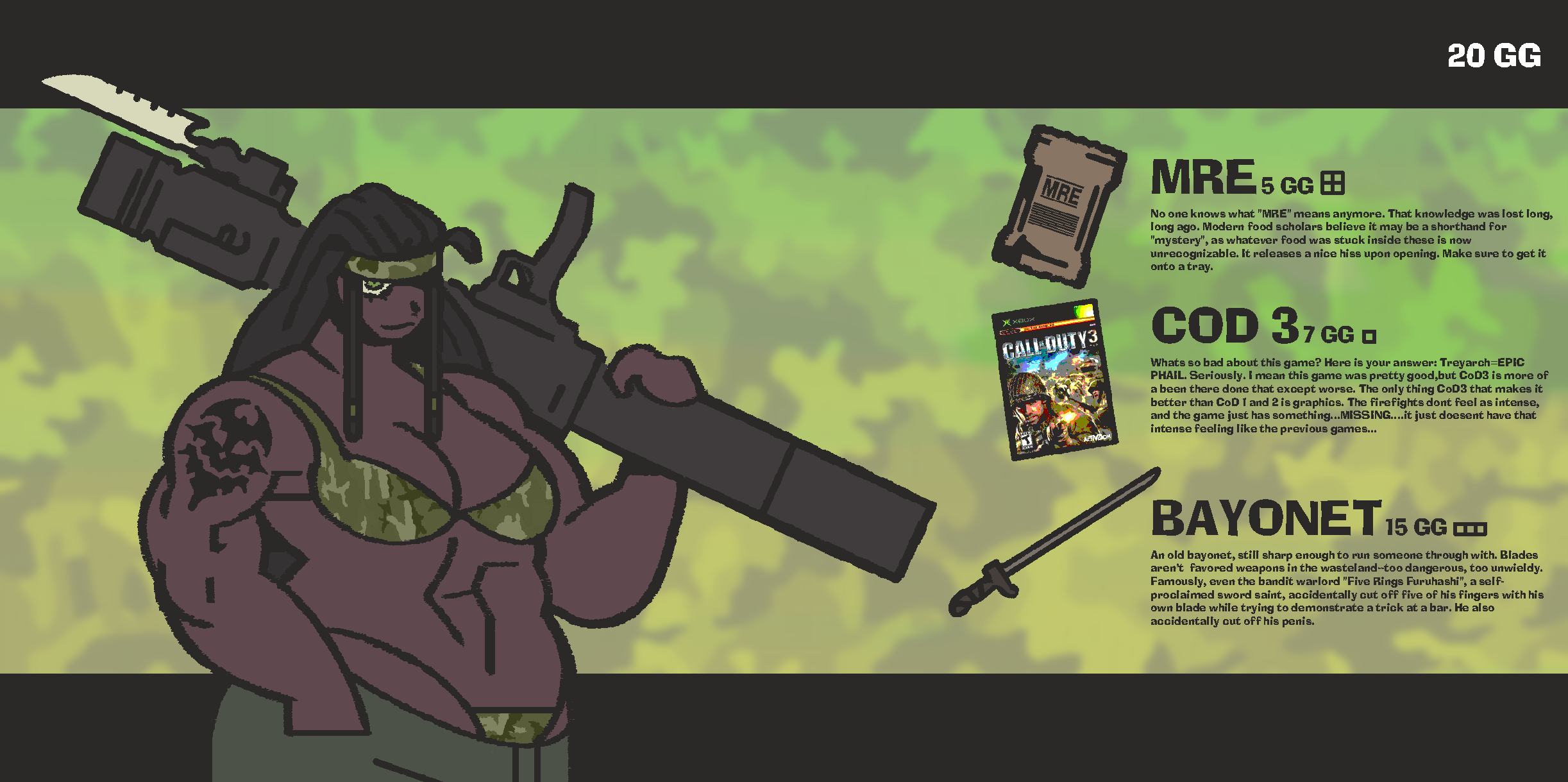 Ever since the great BIG BOOM in the far off year of 2007, the world has gotten pretty nasty–ruins and mutants litter the desert wasteland all around you, roving bands of warlord kings and factions in all sorts of endless wars.