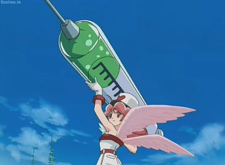 “Yes Doctor!” she replies, impaling your wave of energy with her needle. And as you watch, pulling the plunger back, it begins EATING your attack! Filling the syringe tube with your glowing emerald power. It can even absorb your energy when fired?!