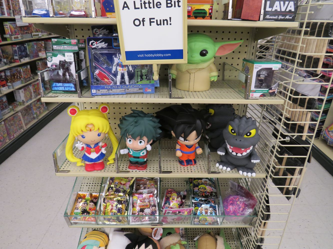 I was surprised by their weeb isle. They had a ton of Gundams, and these fun banks.