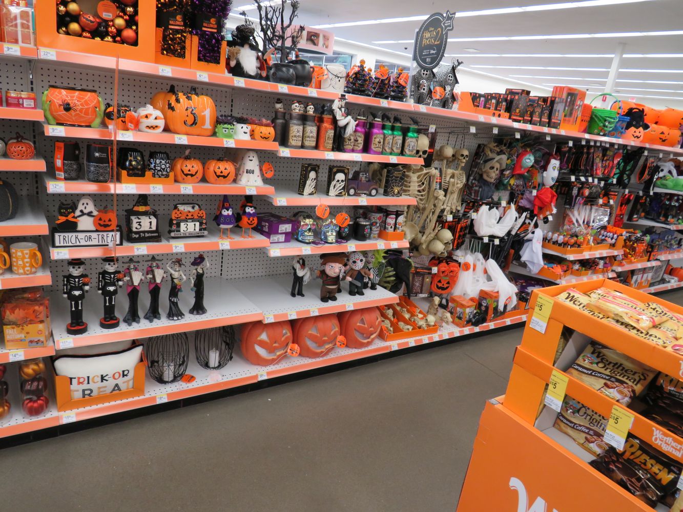 >>10011977 Thanks for doing this! I love looking at these pics. Our Target was still setting up this week, getting a slow start, but they had some amazing little animated gewgaws, with dancing skeletons, a skeleton on a bike, even a really cool peek-a-boo skeleton inside a jack-o-lantern.