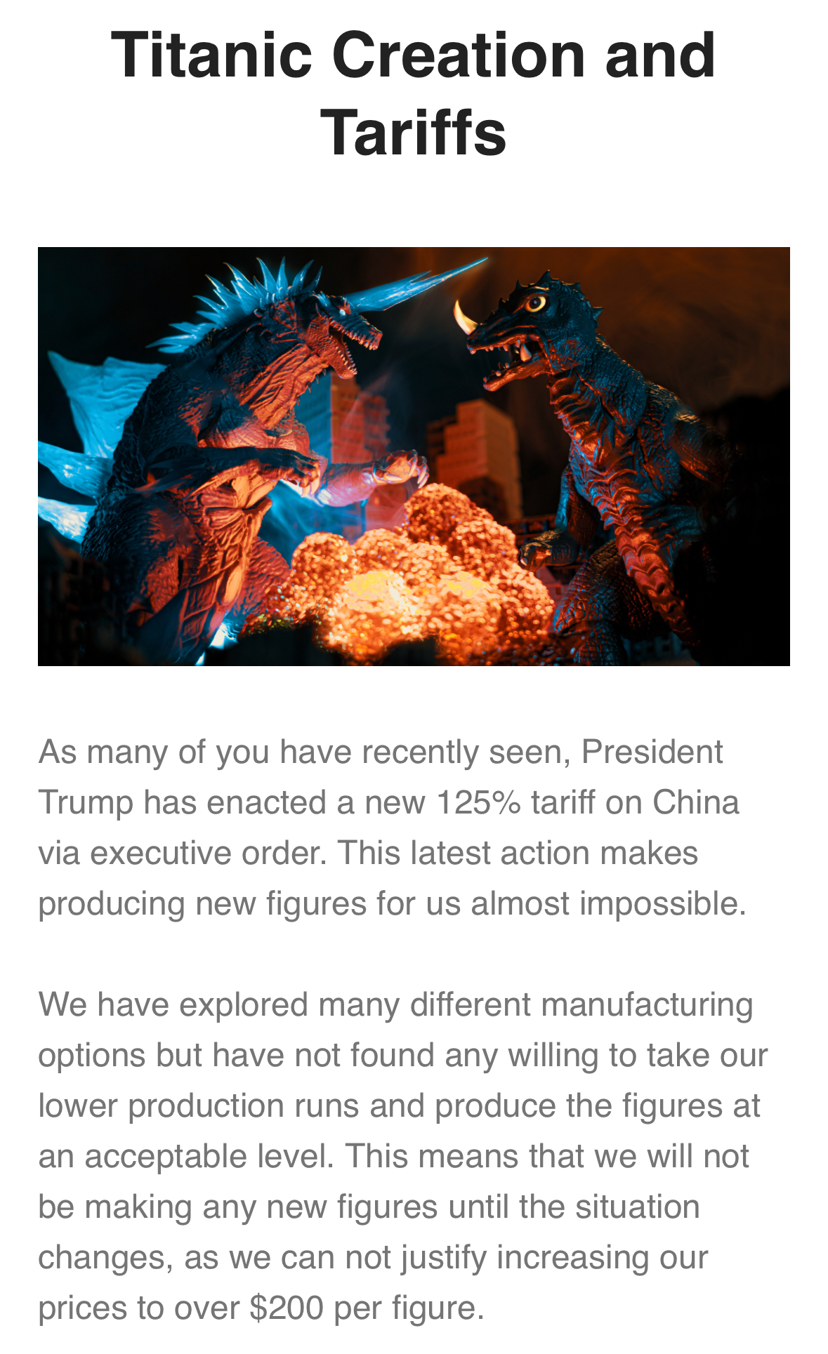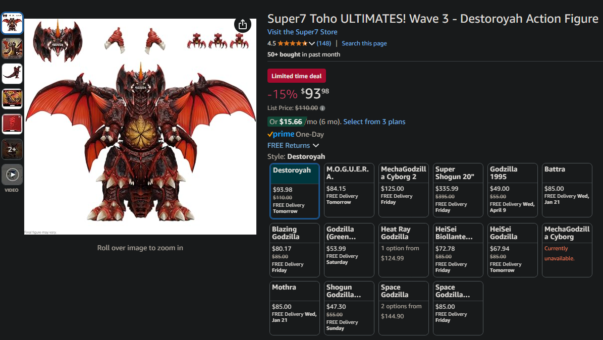 -Hiya put out pre-orders for Ghidorah 2.0 with improved neck articulation. No word on if the wing articulation is fixed as well. Price is $124.99
