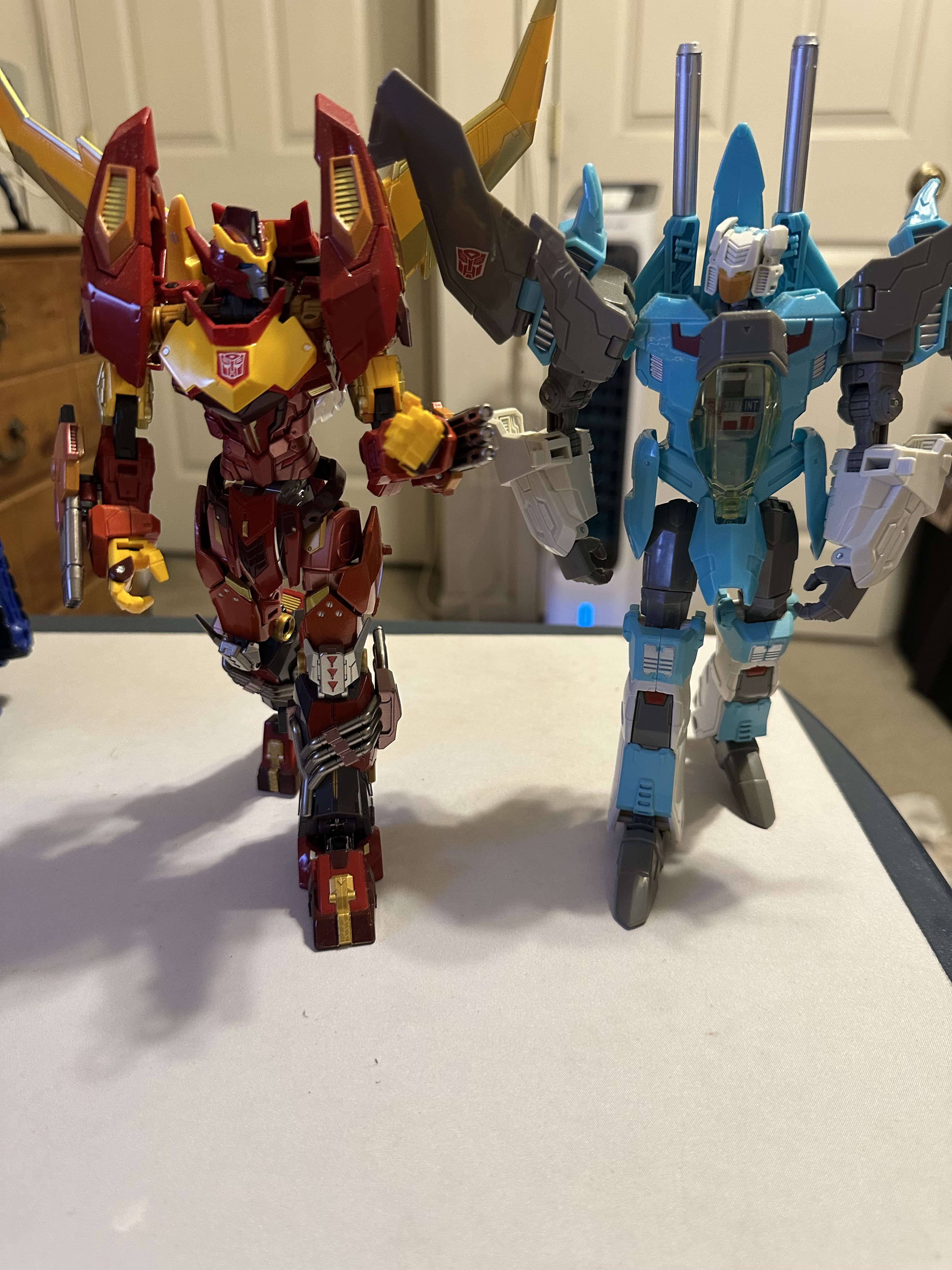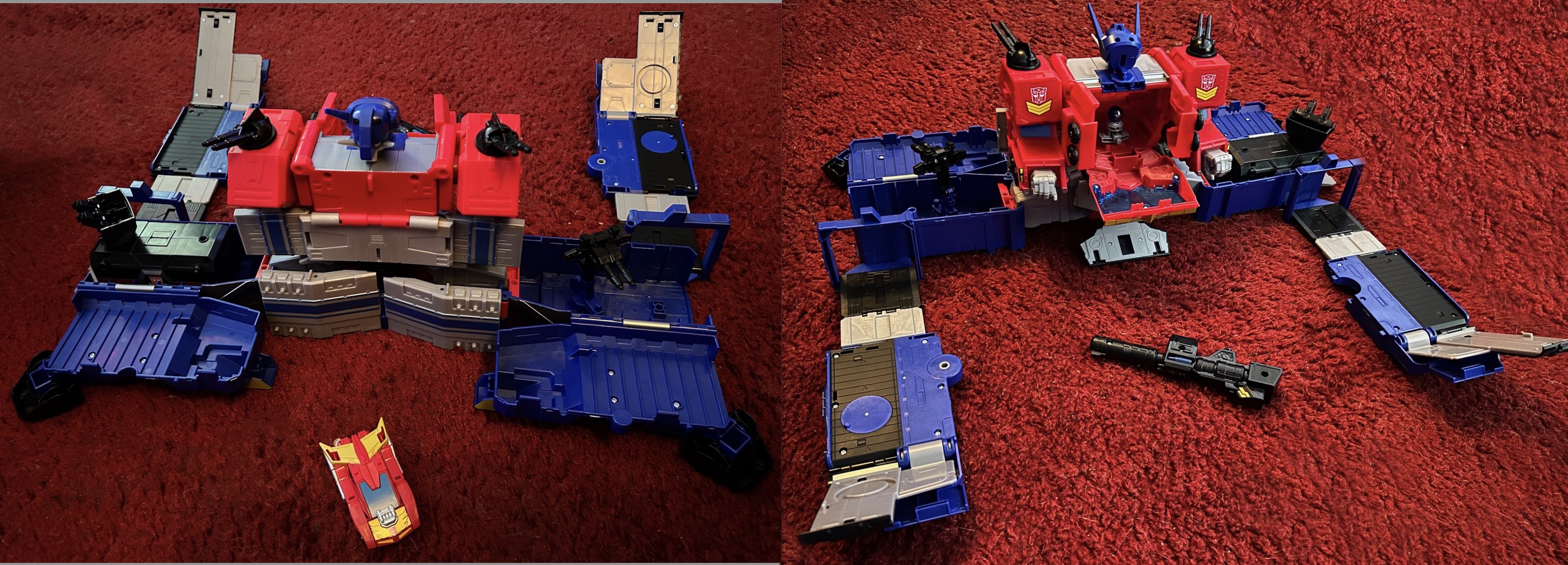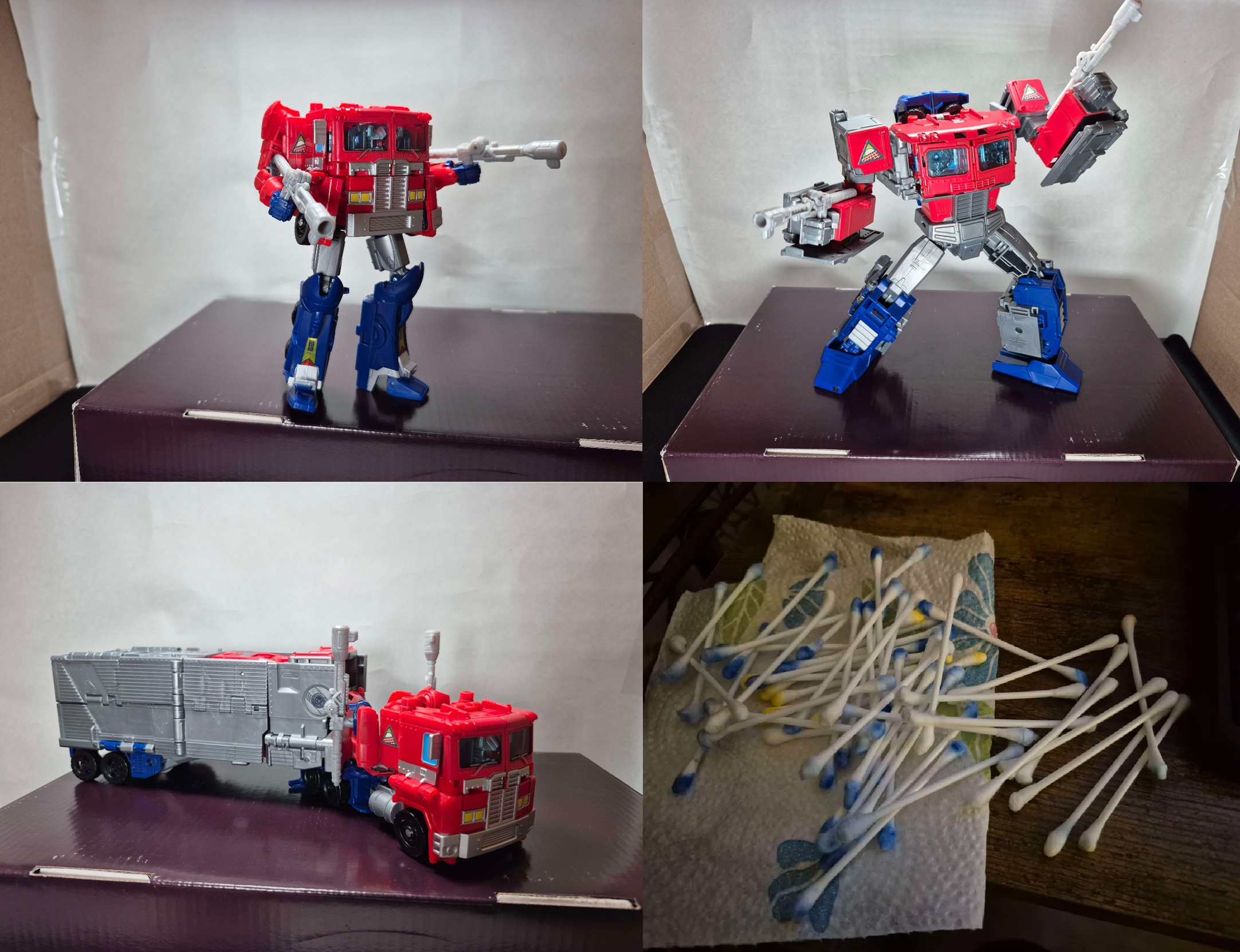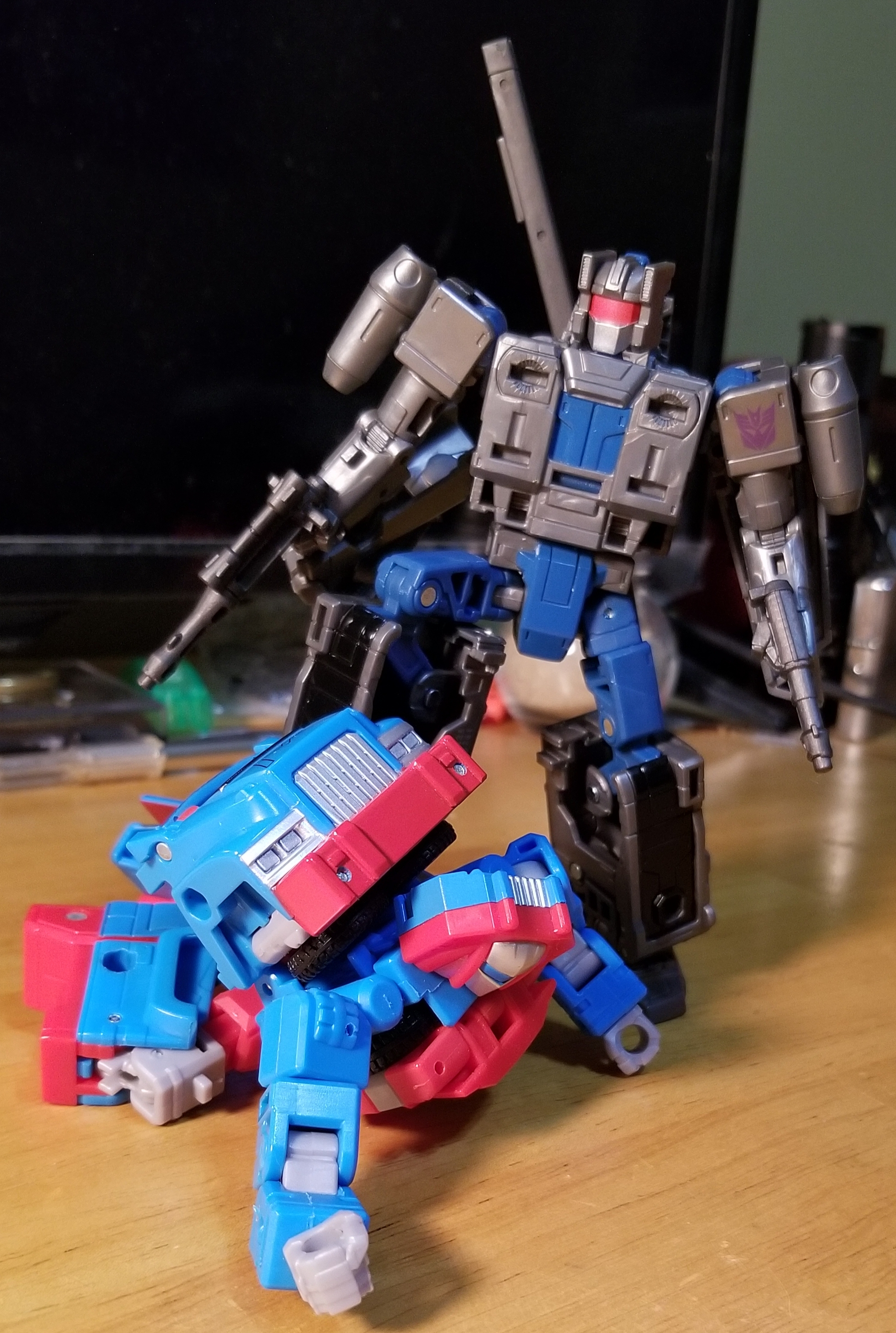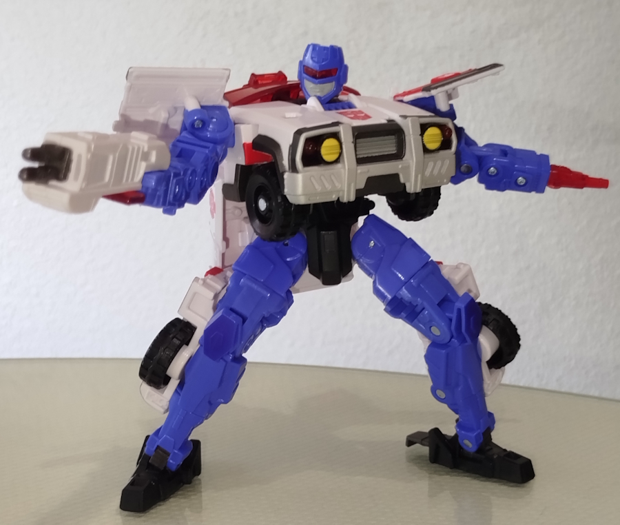 The two biggest things Siege Optimus has going for him are proportions and articulation. He has a much better proportioned robot mode, especially since his pelvis isn't squished vertically like ER making it look like he has a perpetual wedgie. And his articulation is so much better since he doesn't have those stupid wheels hanging off the back of his waist, inhibiting your ability to pose him without at least partially untransforming those pieces.