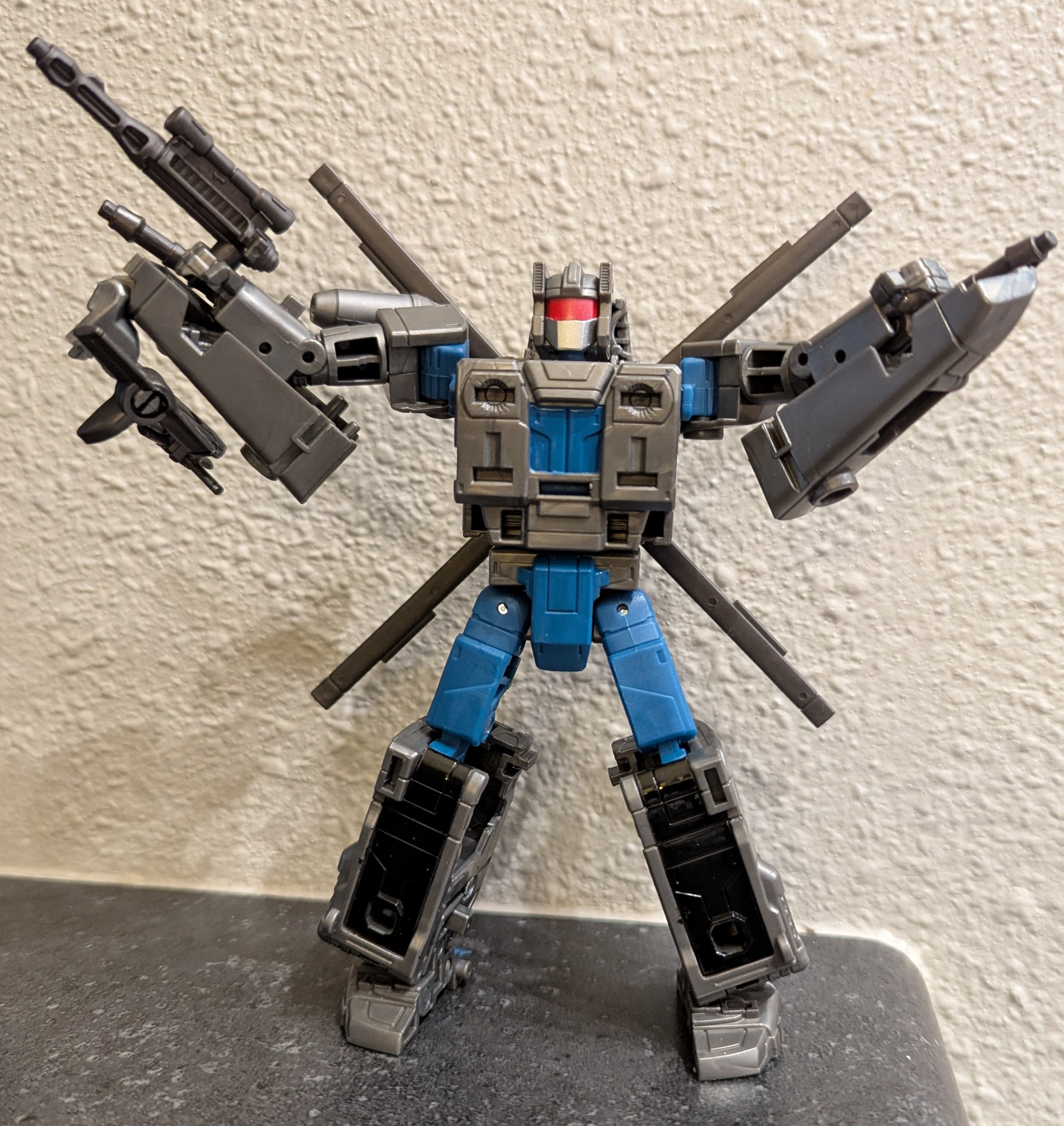 Deco-wise, the initial release of Siege Optimus did have that crappy battle damage, but that's super easy to remove if it bothers you enough. Meanwhile, every version of Earthrise Optimus prior to the recent Dramatic Capture three-pack had ugly deco compromises, such as the initial release which lacked yellow in the center of his waist and had difficult to see eyes, and the Netflix version which fixed both those problems but then was stuck with greenish-gray windows on his chest instead. There was no winning with it!