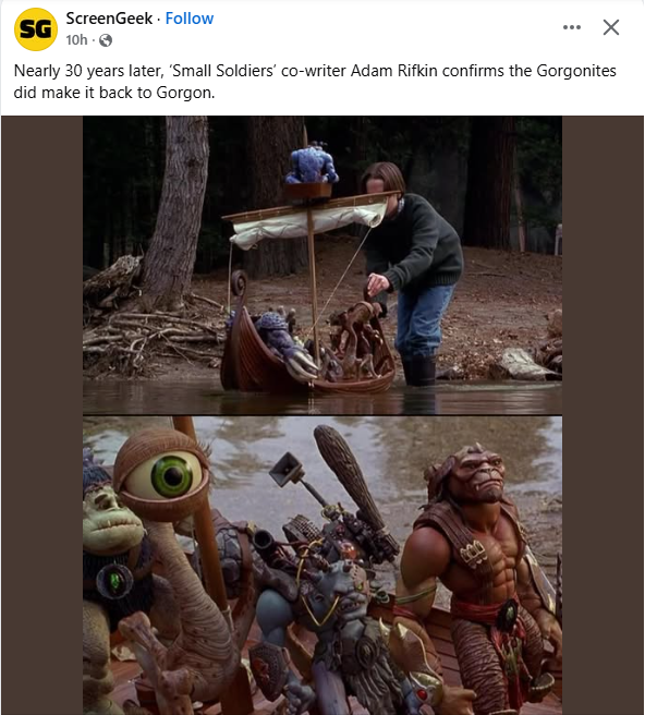 >>11511341Small Soldiers Came Out 27 Years ago and still Holds Up,The CGi Was Unmatched For Nowadays CGI that's now just unfinished because of greed and is better than anything that Greedy Companies are putting out.