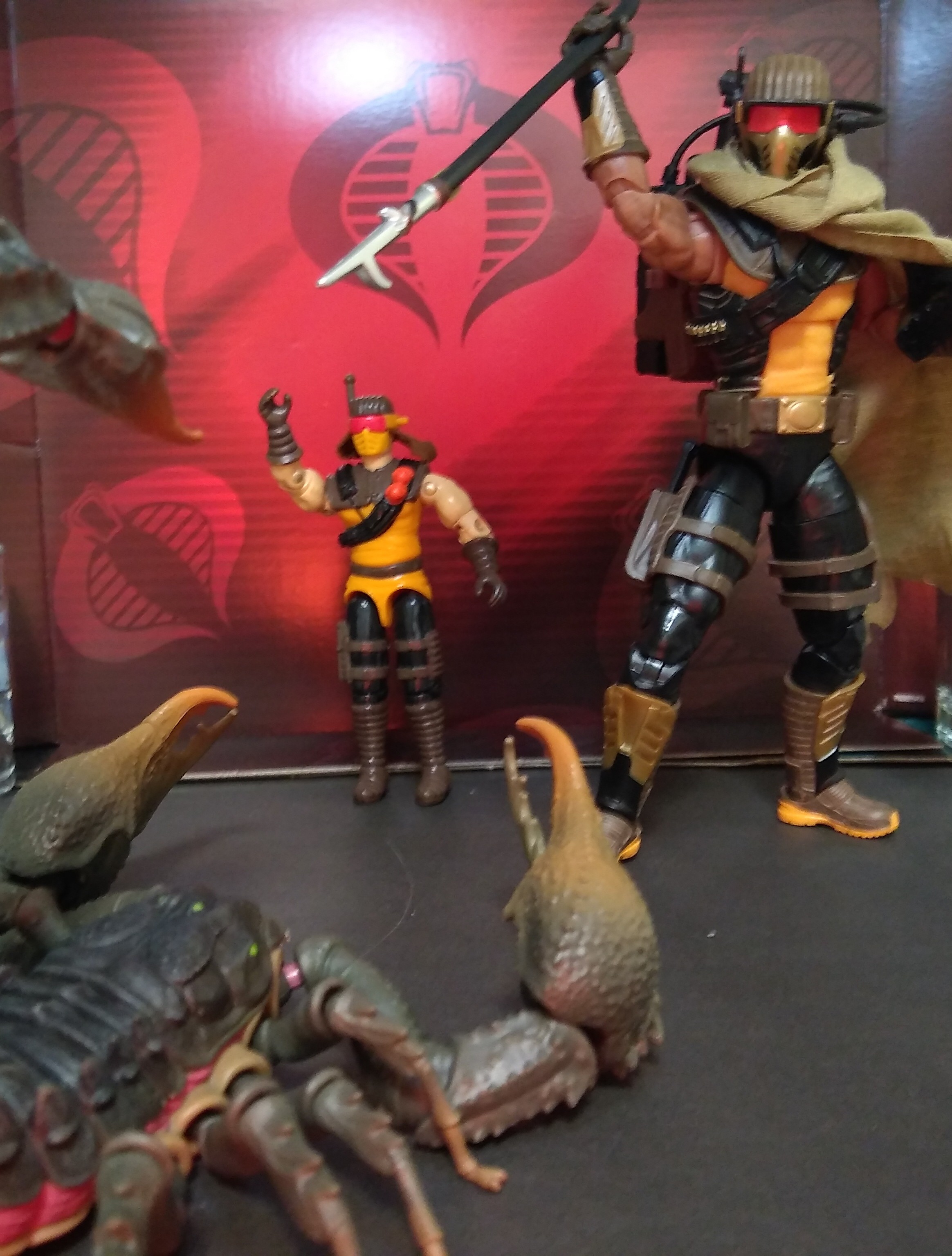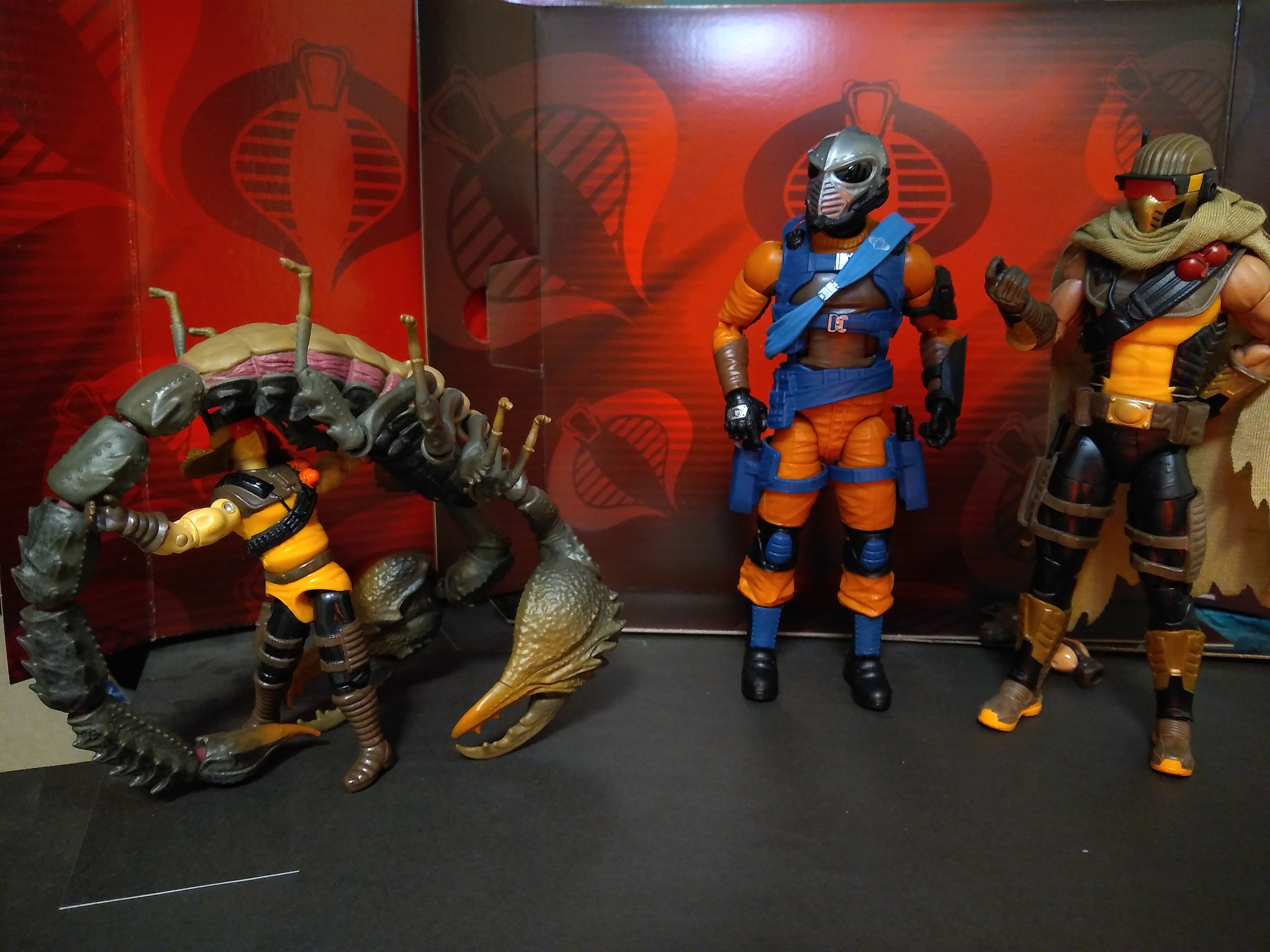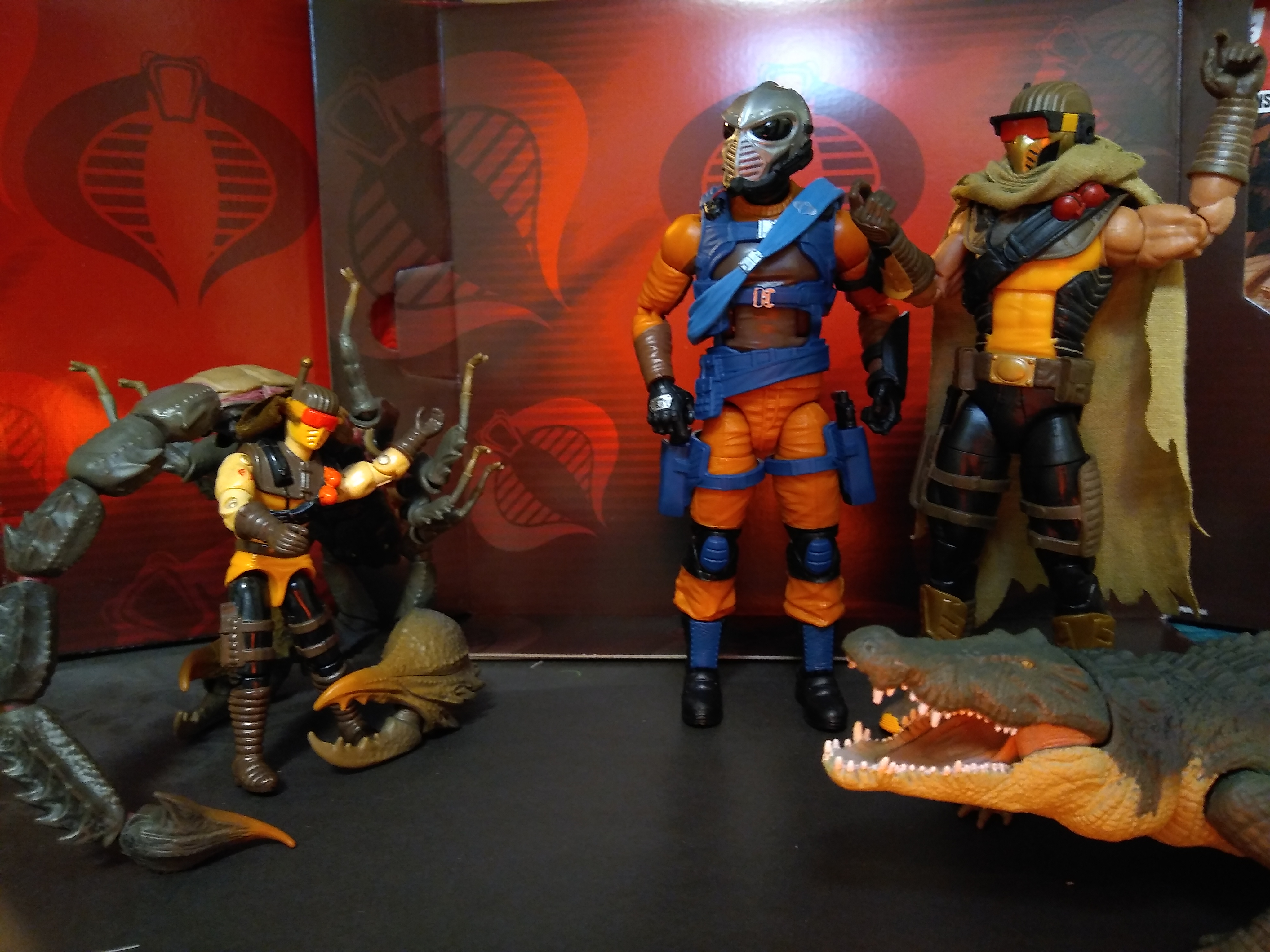 >Super7 Reaction+ Mara, Cobra Commander with cape, Scarlett (Arctic), and Snake Eyes (red glow)