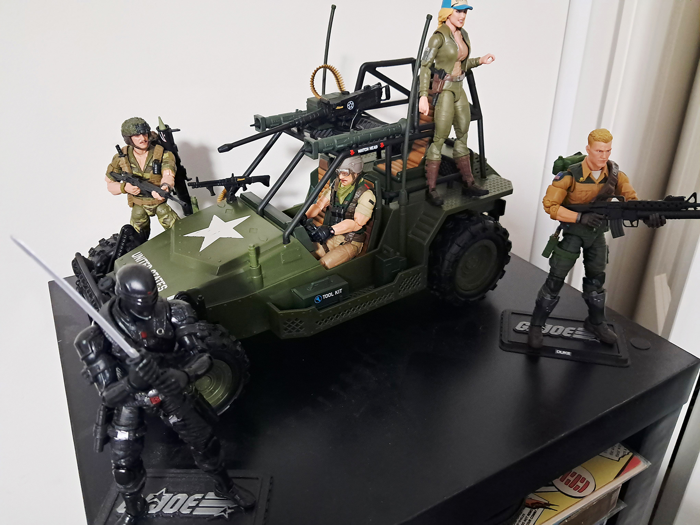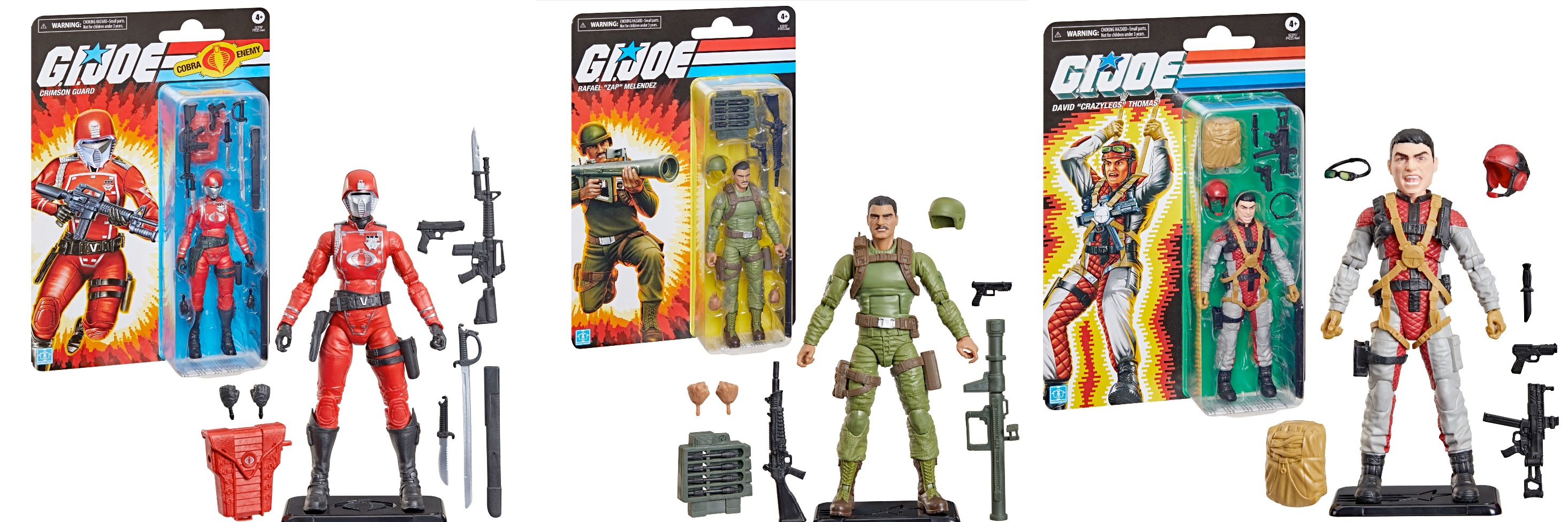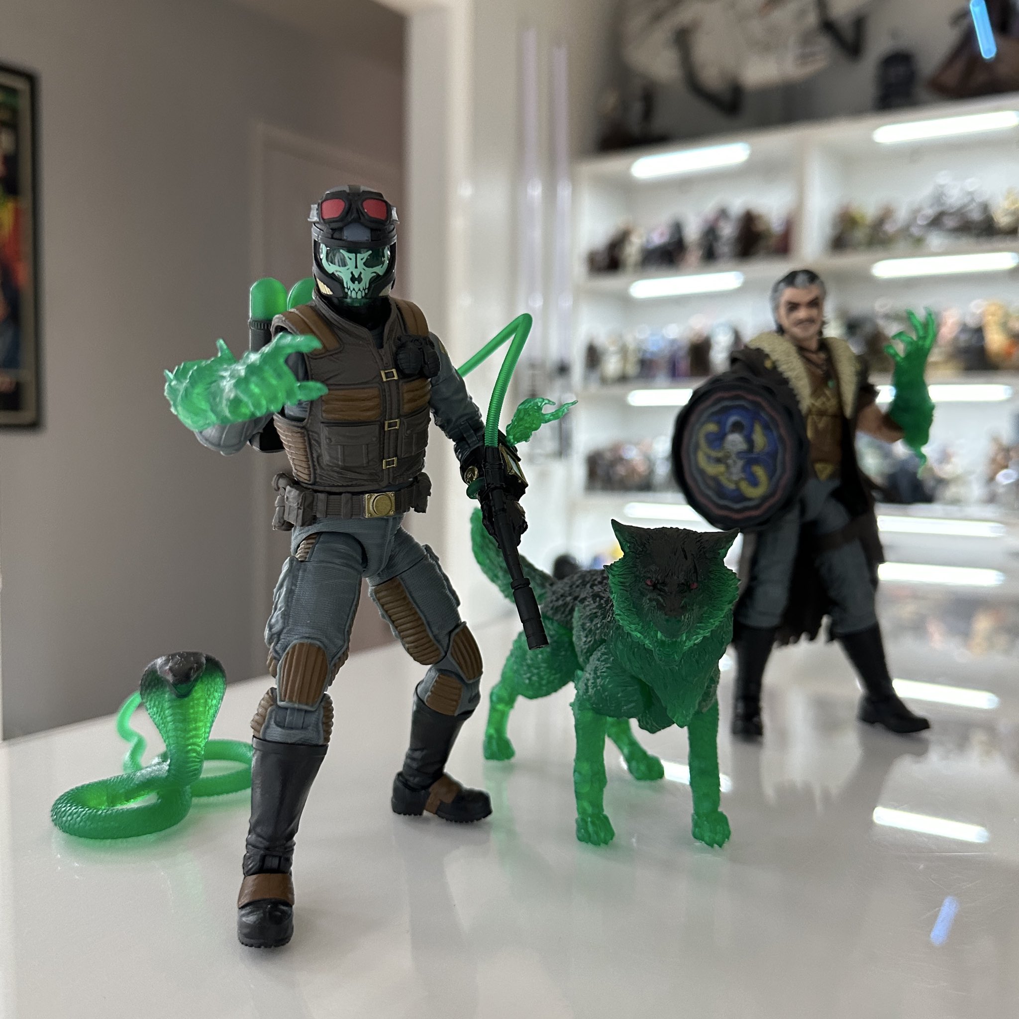>Super7 Reaction+ Mara, Cobra Commander with cape, Scarlett (Arctic), and Snake Eyes (red glow)
