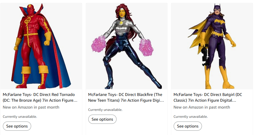 - Flash, GL (Hal), Darkseid, Batman, Superman (standard/classic looks) pre-orders up