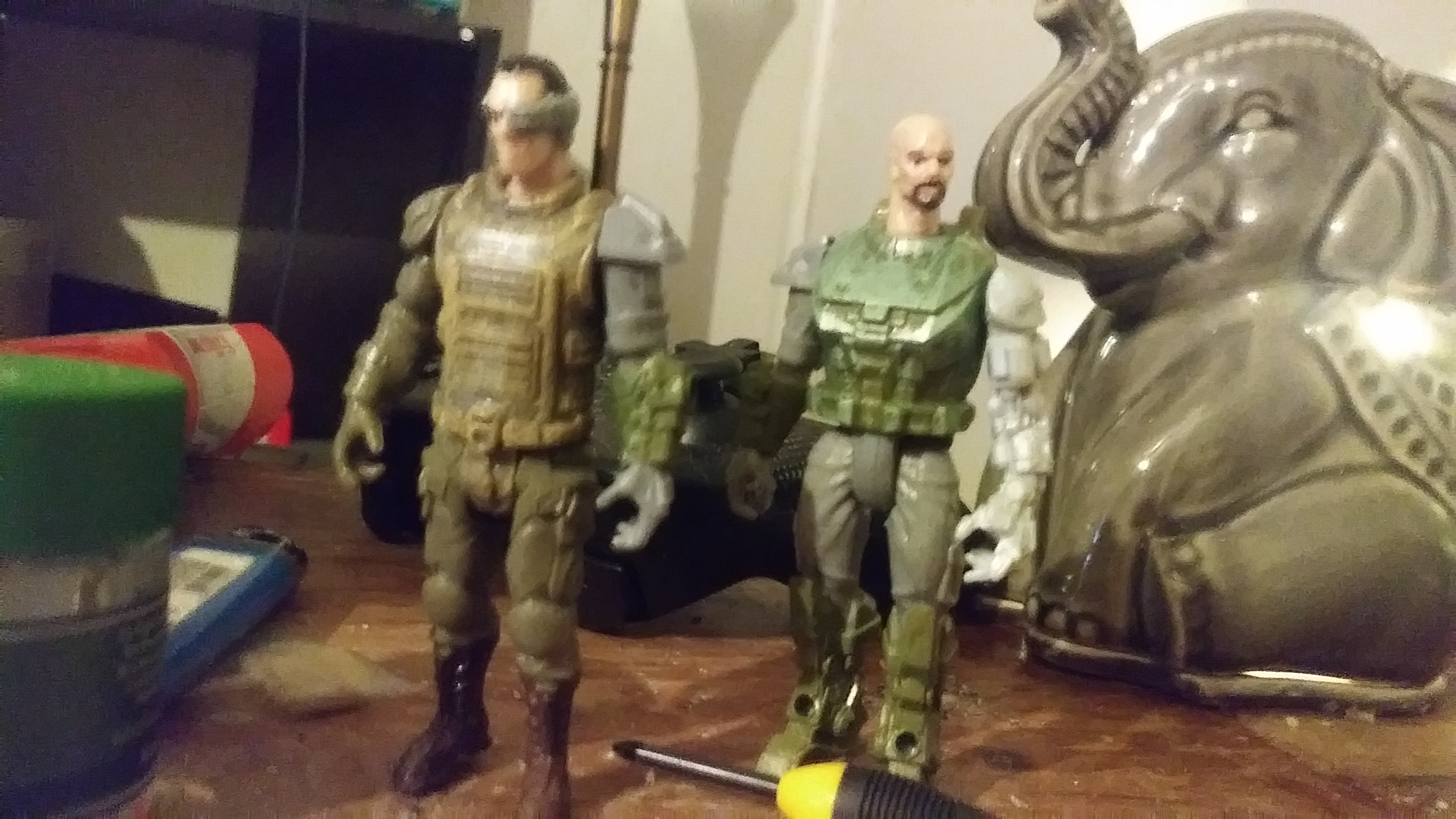 So someone yesterday had posted somewhere about a Dollar Tree branded line of figures called 'Final Faction' (apparently they made a short cartoon with the characters as well). It's very much a G.I. Joe meets Halo-esque knockoff. So I went out and got the full set, which includes 5 members of Alpha Team 1, 3 of the Kharn Army (aliens) figures, and 6 accessory packs (3 for each side). They only have 5 points of articulation, but honestly, for a dollar, they really aren't all that bad (they feel solid enough and a few actually have some weight to them). Nothing amazing obviously, but it got me curious; Does anyone collect cheap lines of toys? Are there any good/decent ones out there? I'd love to see and hear from y'all!