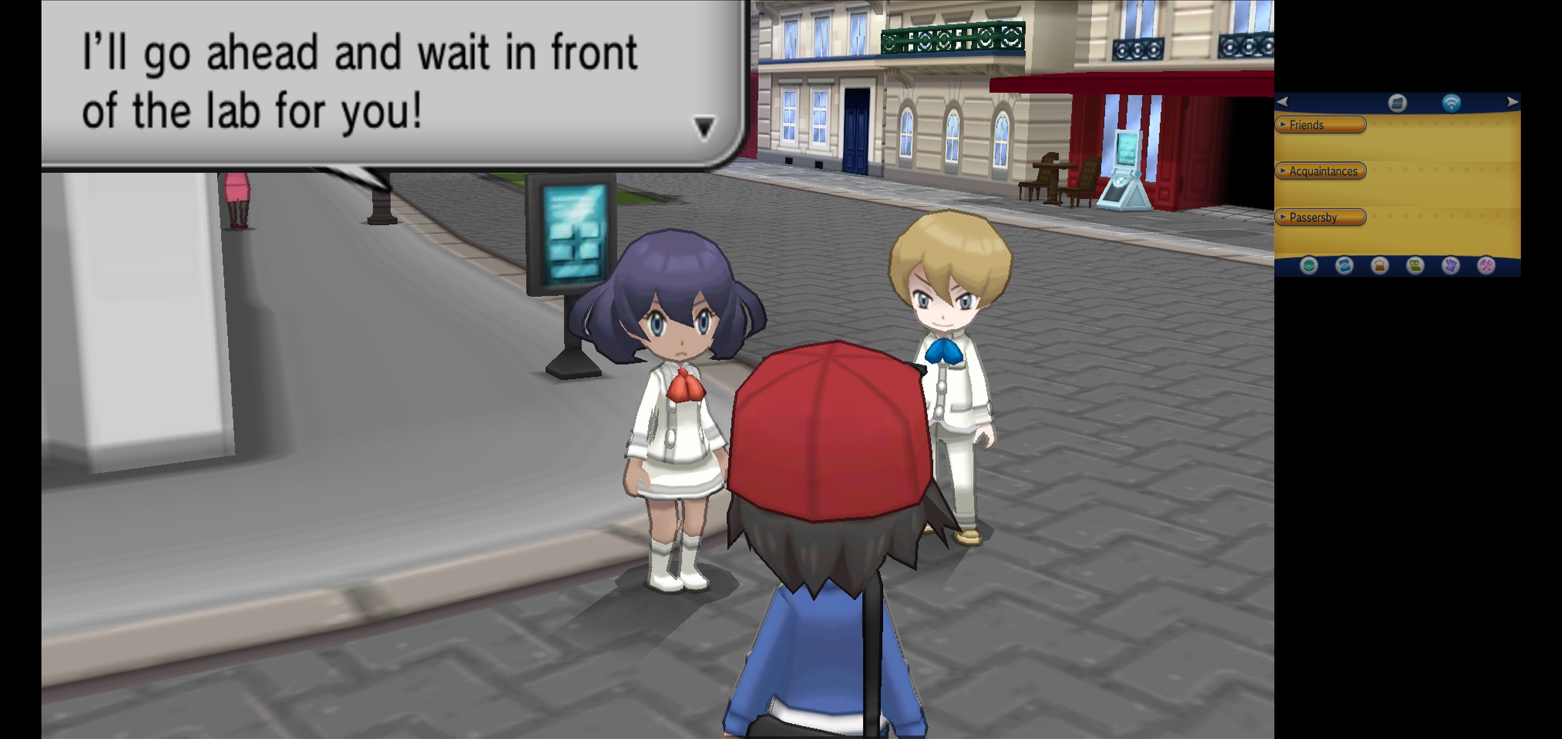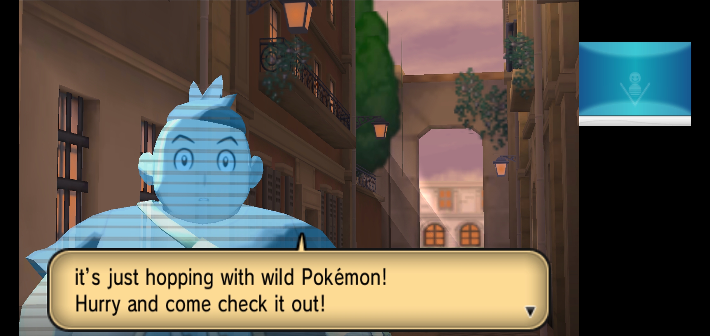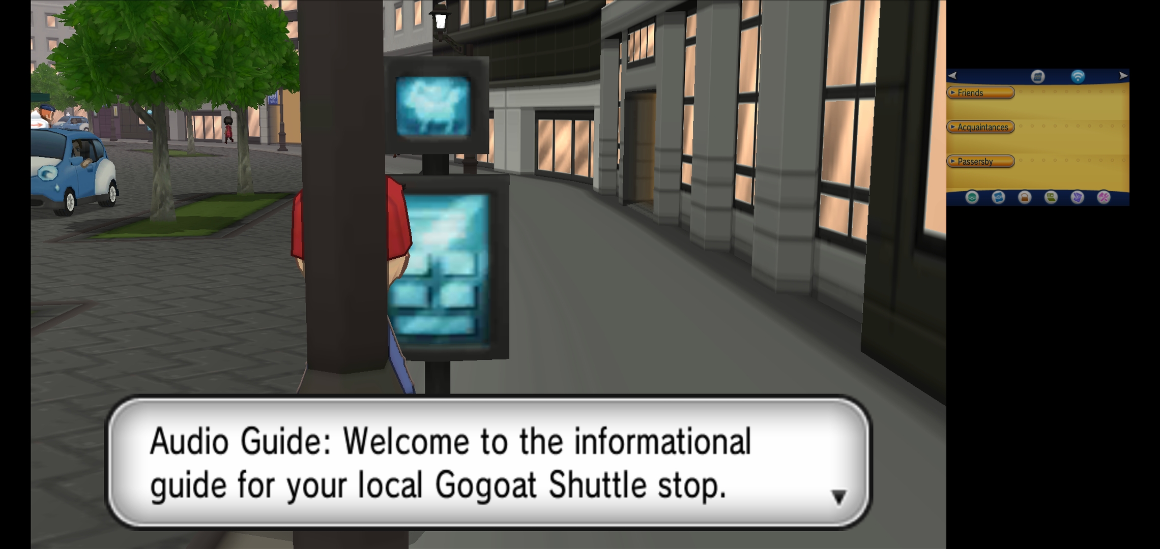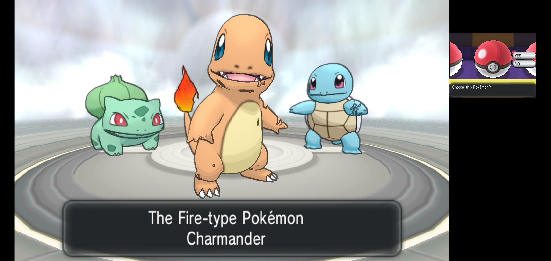 Going through the city going through a power outage with all its lights on and getting 1 of 3 possible [REGION 01] starters. Connected a controller to get the UI off and increase screen size.