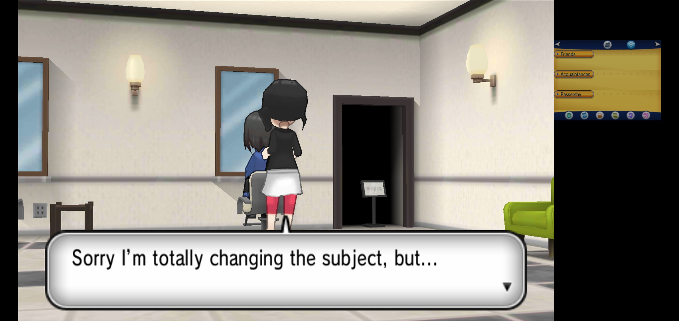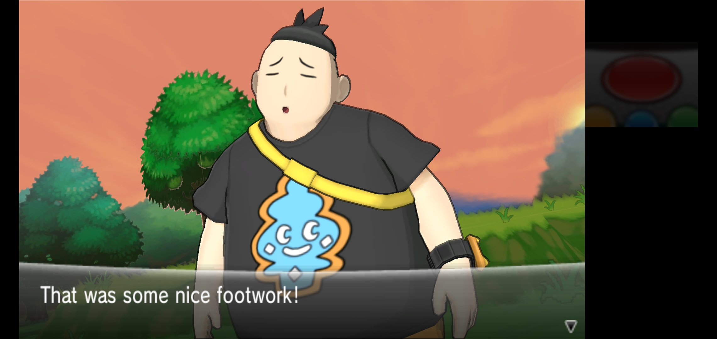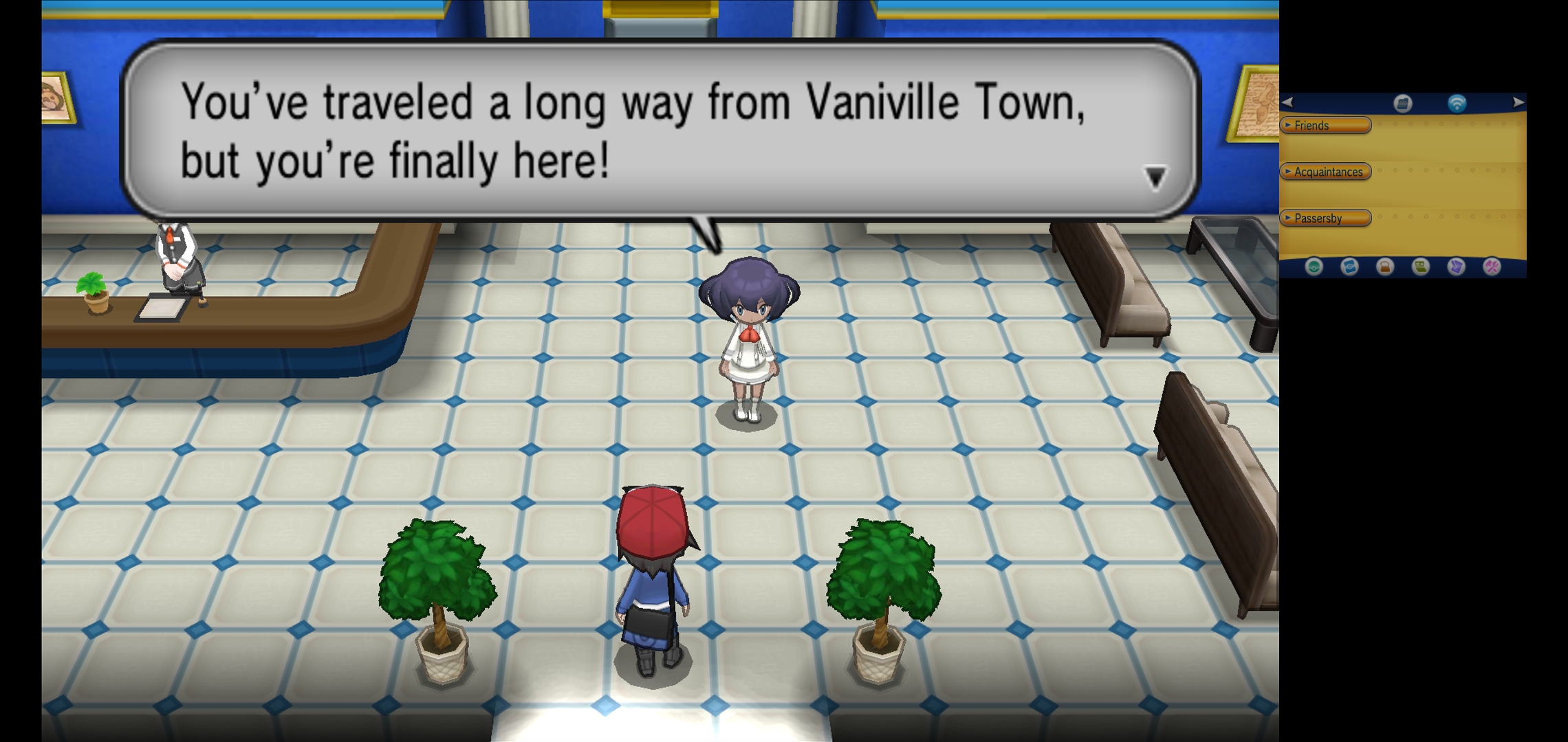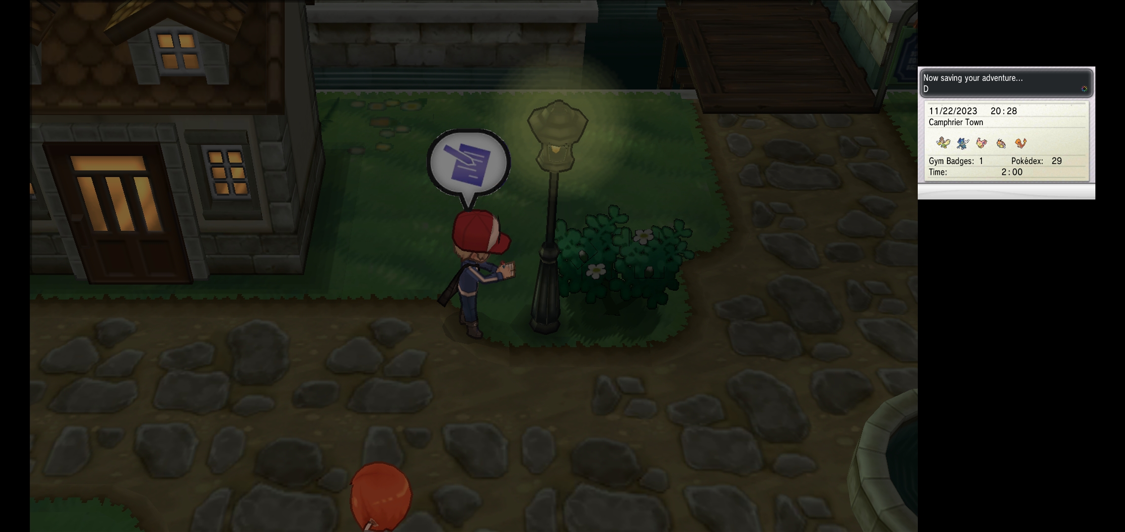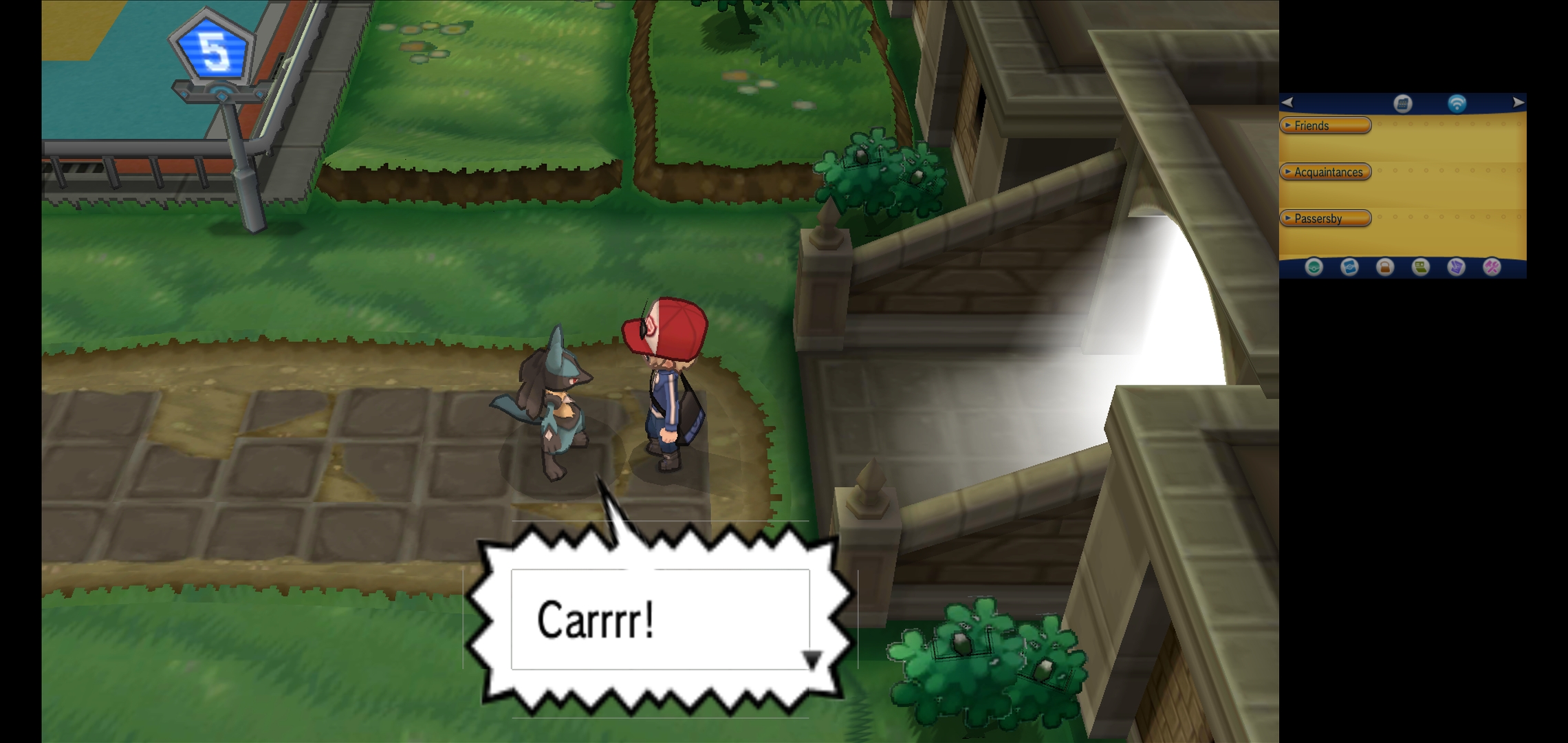 Going through the city going through a power outage with all its lights on and getting 1 of 3 possible [REGION 01] starters. Connected a controller to get the UI off and increase screen size.