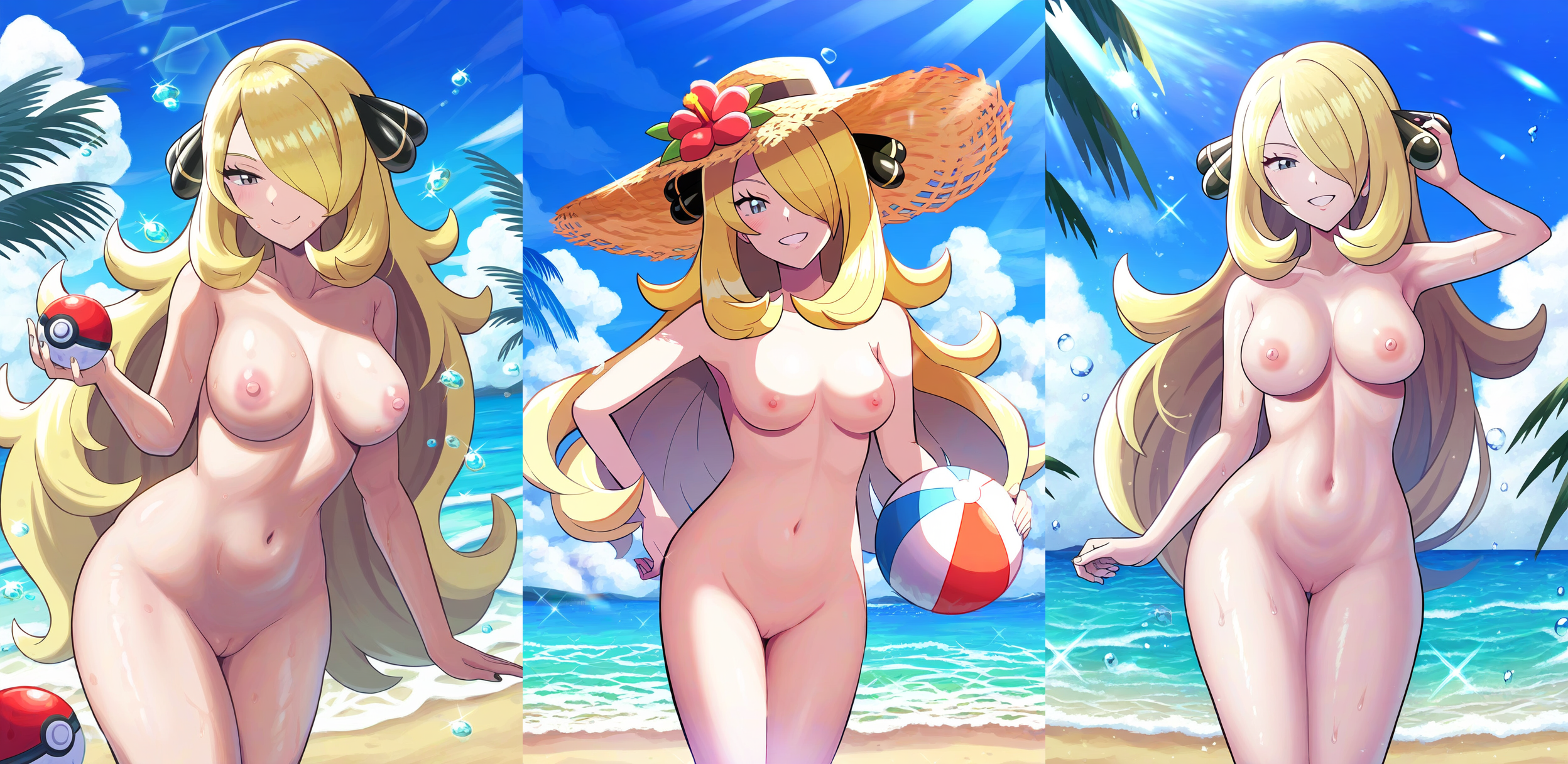 Can anyone do lyra or kris(no hat on either of them) sitting on the beach, in a swimsuit, shielding their face from the sun?