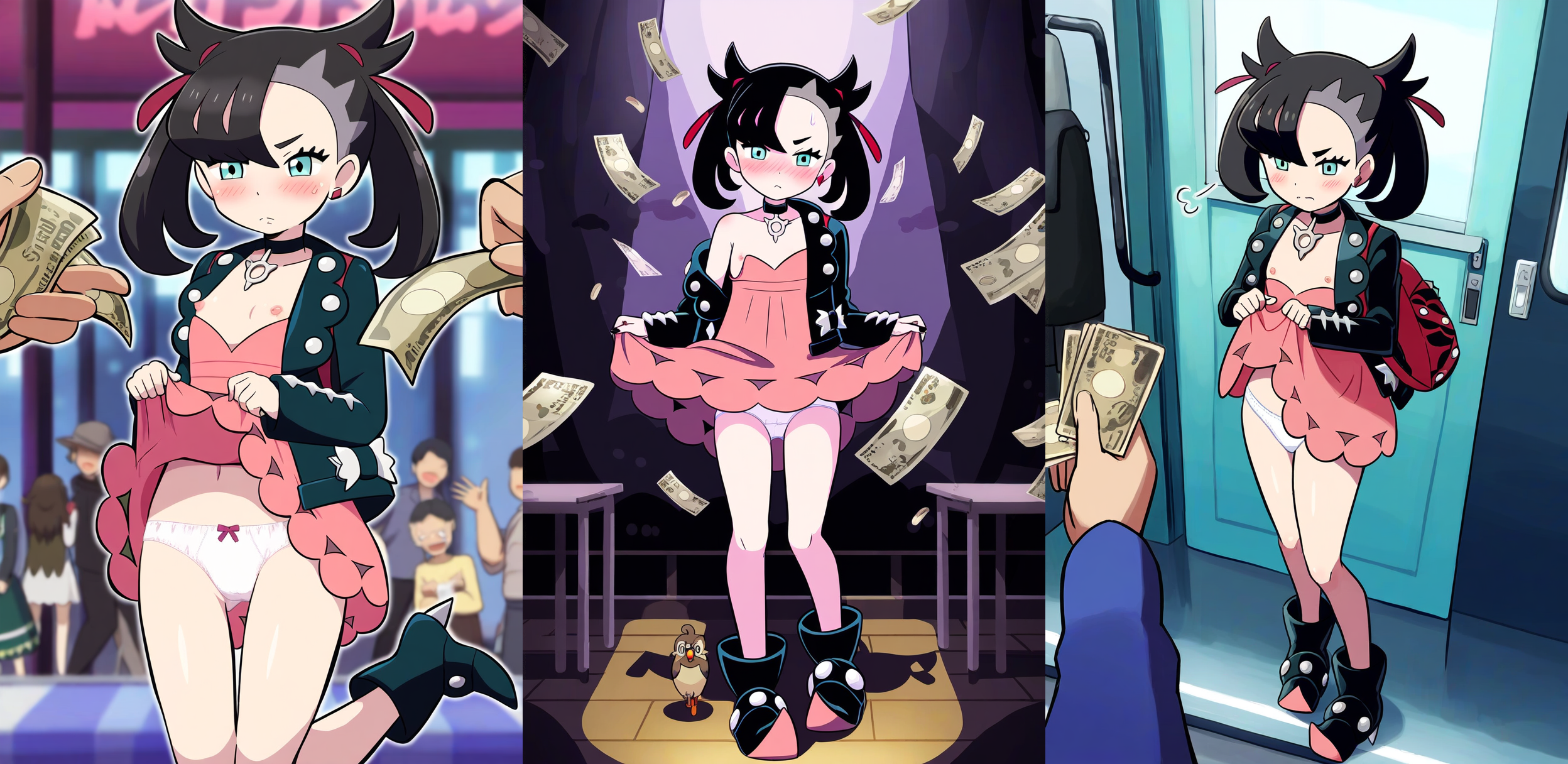 Aight, gonna go see the new DLC online and find out if Scarlet is worth getting (probably not). Be back in a couple hours. I work on big thicc girls, size may vary. I ain't very good either, so pls be nice. Remember to give an artist and any extras, plus to use Danbooru for any tags. Do not request the following;>'multiple views' >more than one (1) character >the following characters; Valerie Olivia Plumeria 'Extreme' ages (see below)>contradicting tags (i.e. hands on own legs, from behind) >backgrounds, once asking for 10-15~ tags >any artist on Danbooru with less than 200 results, unless specifically exempted >'medium breasts' (we work in curvy here; unless a flat-chested pear shape, go big or go find another prompter) Here are some artists from my testing as a base;>Denki Showgun >Nyantcha >Gonzarez >Donedone >Yoi Naosuke >Pokemoa >Afrobull >Boris (noborhys) >Mirai Hikari (MiraiArt) >Jabara Tornado >Haruhisky >Kloah No explicit NSFW please, not in the mood to use Catbox rn. I take almost any character minus extremes like Poke Kid (SwSh) or Agatha. Again, check Danbooru for potential candidates. I won't generate any prompts unless spoken to through this anchor, unless called out by my temp name or I'm the only generator ITT at the time of request, and some form of curvy is listed in the prompt.