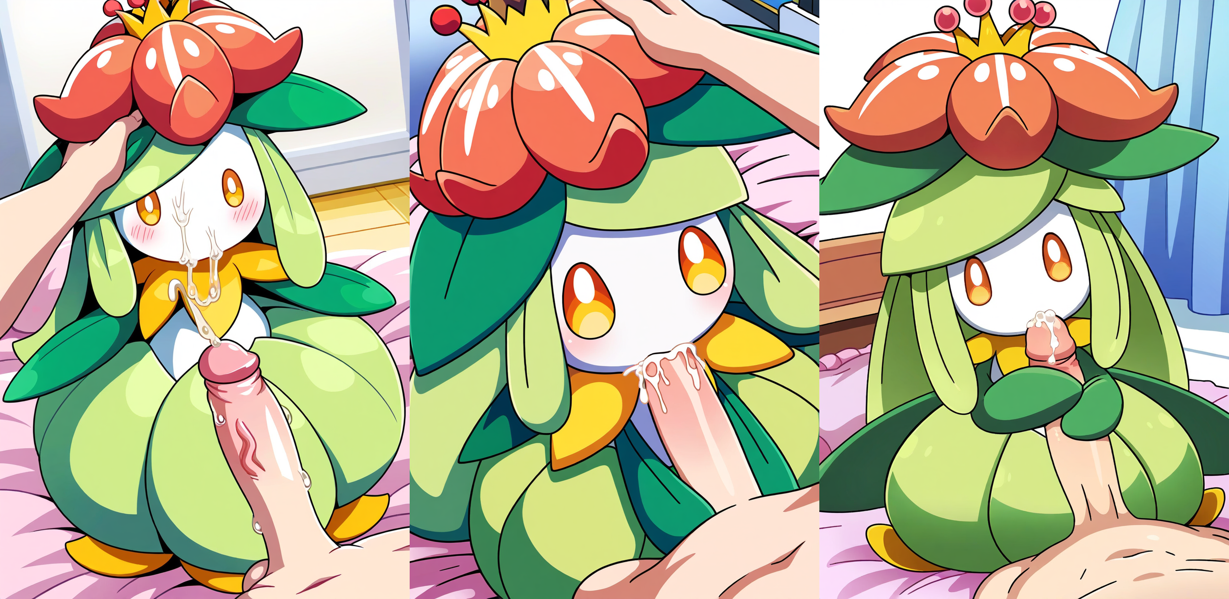>>55193799 requesting a happy Lilligant giving a blowjob, no visible mouth, or give her one but make it cute like Scream Tail's or something