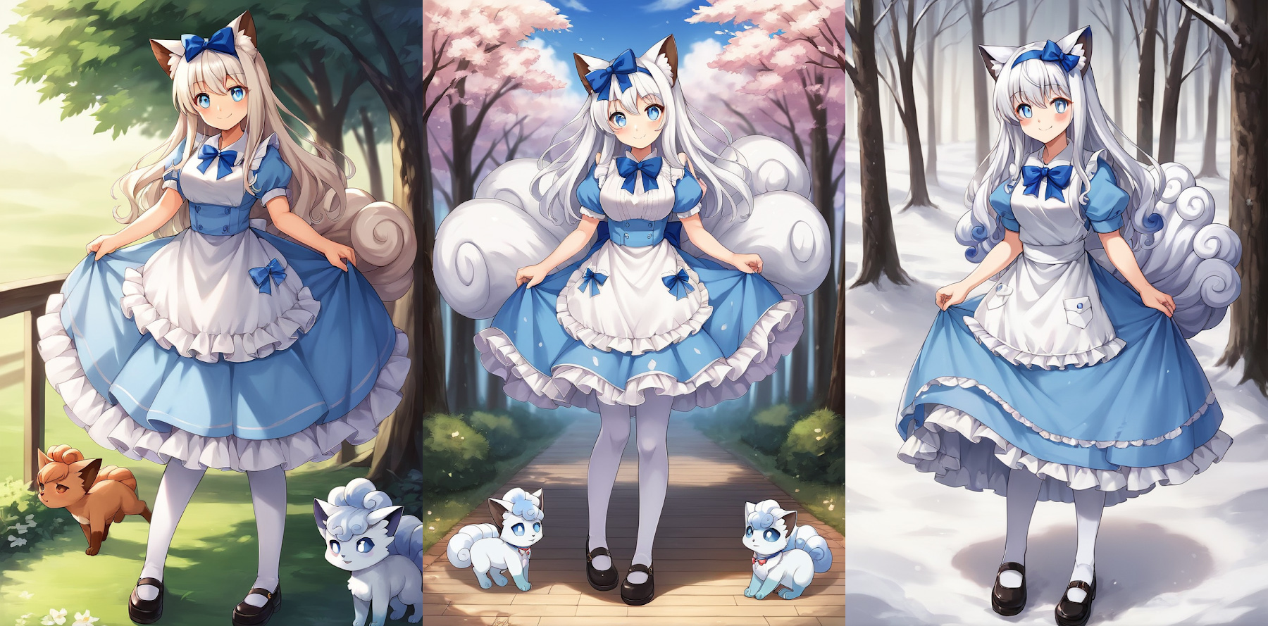I return with some more gijinkas. When I shared the Vulpix and Ninetales ones on a Discord thread I'm a part of, someone suggested I give the Alolan variants a try. It took a few attempt to get something, but when I did, the results were glorious.