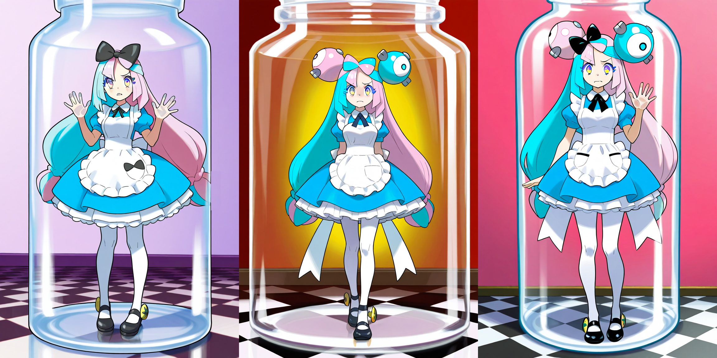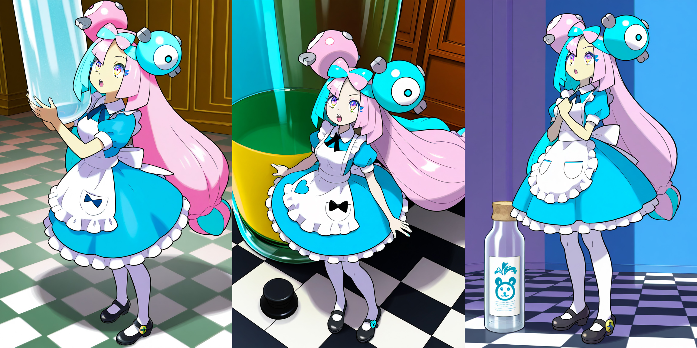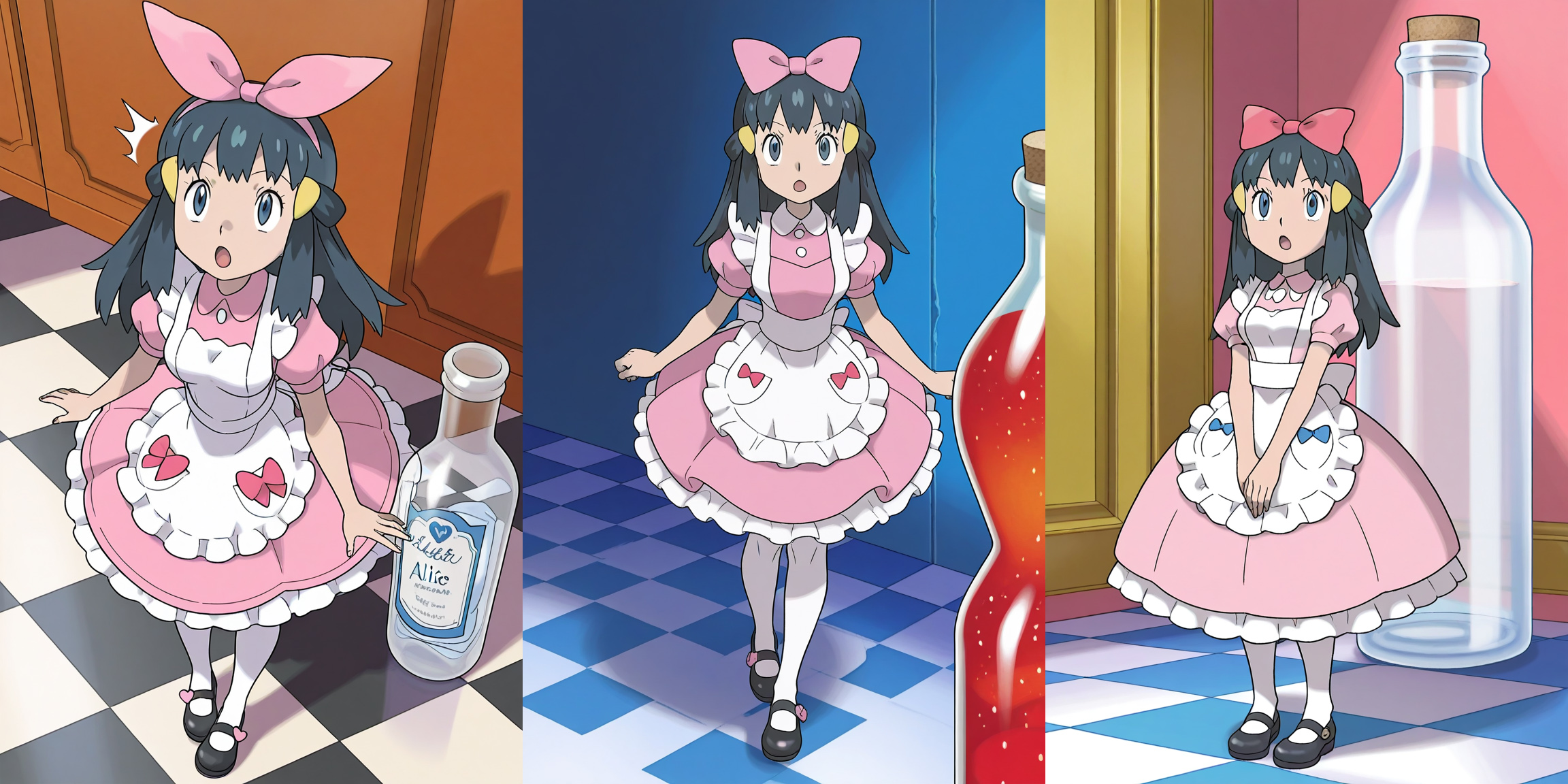 One on the left seemed to emulate the Disney animated movie, where Alice was still holding the bottle as she got smaller and smaller. First time I've had that happen with these Tensor gens.