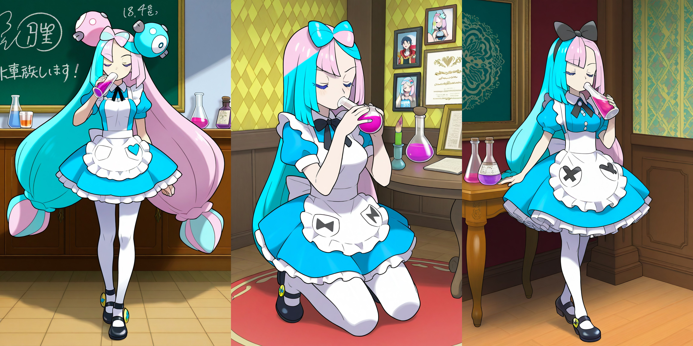 >>57543741 I don't want to be this kind of guy, but Iono in the middle... Rather than drinking from a bottle, she seems to be repeating her actions from a certain catbox link in this very thread...