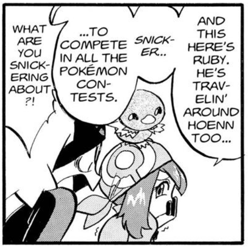 Also Wally literally was a main character (Pokedex Holder) in the original magazine run of the RS arc, he got the Pokedex registered to him and was even in promotional art with Ruby and Sapphire implying he's a protag (some of these are in the official artbook). But for the full volume editions later on, as there are alot of changes between the magazine runs and manga full volumes, Wally was retconned to lose the Pokedex and Grovyle, now making him a permanent background character. It's so severe that in the story, Kusaka made it so Wally has only befriended Ruby, but never interacted with Sapphire or other protags even by the ORAS arc.