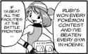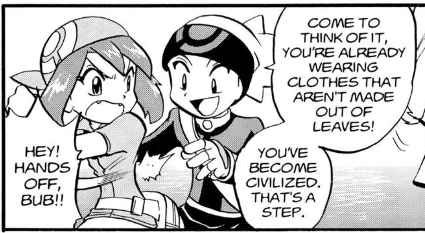 4. Emerald is a rude selfish little 3 foot tall goblin with disgusting habits (like pissing off of rooftops). Wally is a sweet kind-hearted boy at normal height who overcame his illness after Norman's training. Most "regional groups" among the manga protags only have 3 people with a 2:1 male:female ratio. Between Emerald and Wally, guess which one is potential competition to Ruby as Sapphire's love interest, and guess which one ended up getting written out. Yes I'm being completely serious about this.