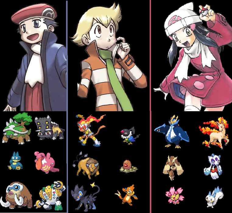 >PlatinumI hate Platinum as a character more than life itself but she also has a good team. Diamond's is probably better thematically but her choice in mons matches more with my taste. Feminine or cute mons, some with kind of a high-class vibe. They're nice to look at as a group too. I can give Platinum credit where it's due