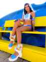 I imagine she has an athletic, well toned swimmer build without being overtly muscular. Little body fat, thighs and butt hard as steel, modest but not flat, firm tits. Prime gigastacy physique.