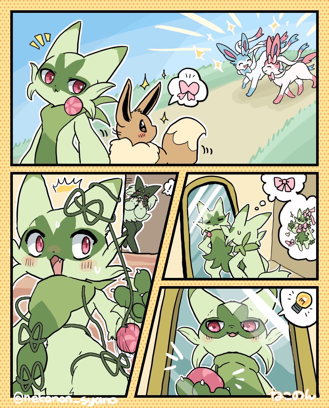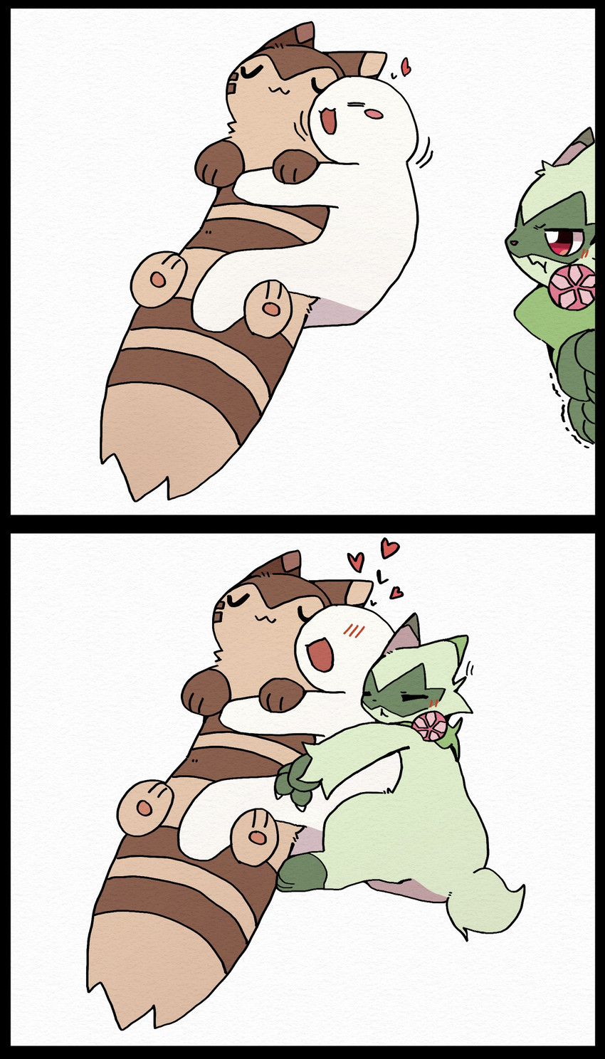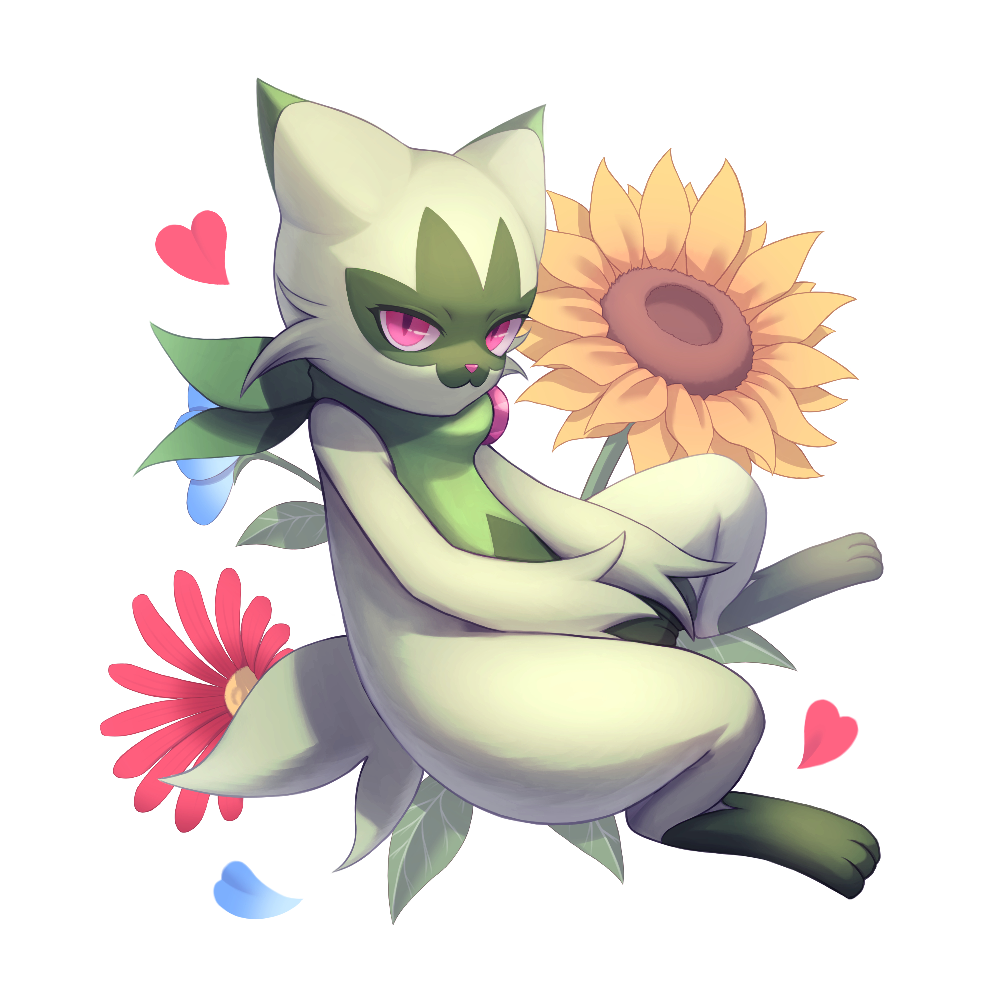 I like Meowscarada (I hate its mouthful name though), but it feels like it loses some of those cute and shy aesthetics in favour of looking like a furbait. It could be said it gains from other aspects but I prefer Flora in the end.