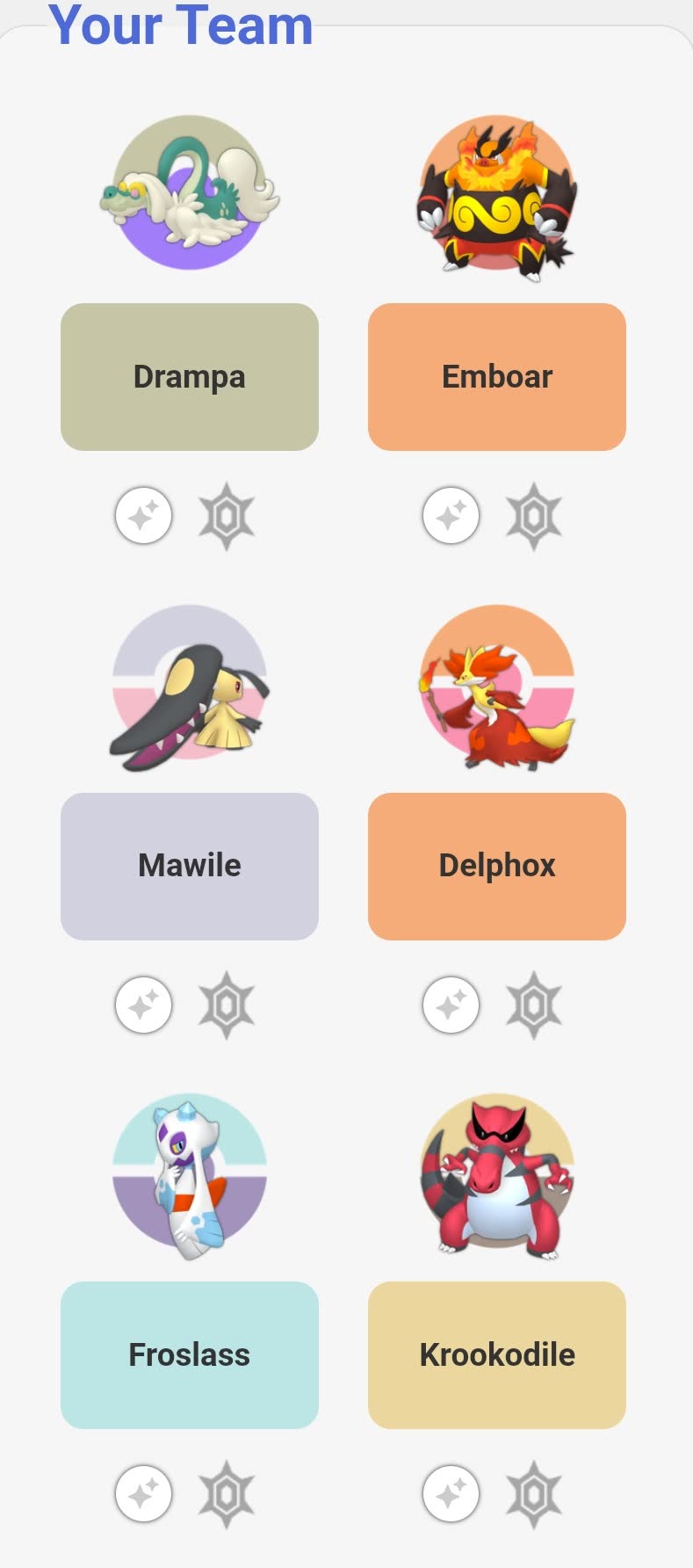 This will be mine, with an extra space for Zygarde to occasionally join (I don't usually have mythicals/legendaries as permanent party members).