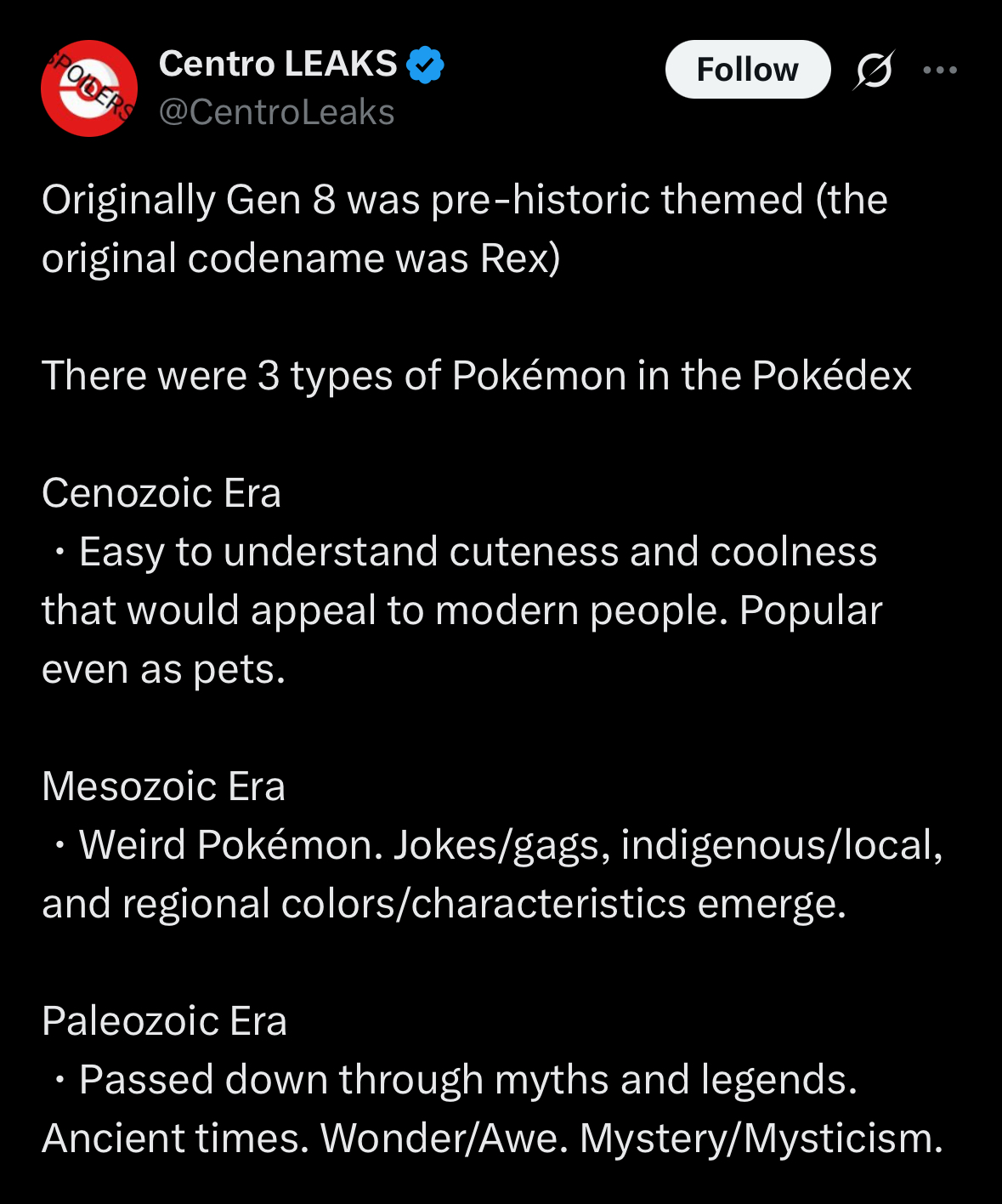 >on top of that, leaks have revealed that Gen 8 was going to be entirely prehistoric themed at first