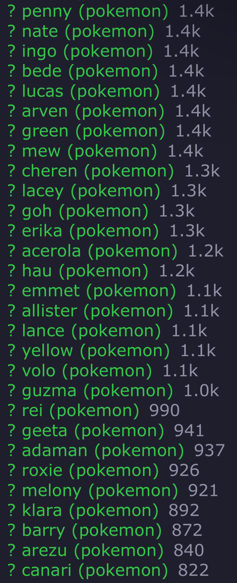 At the pace she’s going, it’s safe to say Canari is clearly in the big leagues now, considering she’s beating more than just forgotten nobodies like Perrin, Wicke, Shauntal, Karen, and Lorelei. Expect her to reach at least 1k before the year is over.